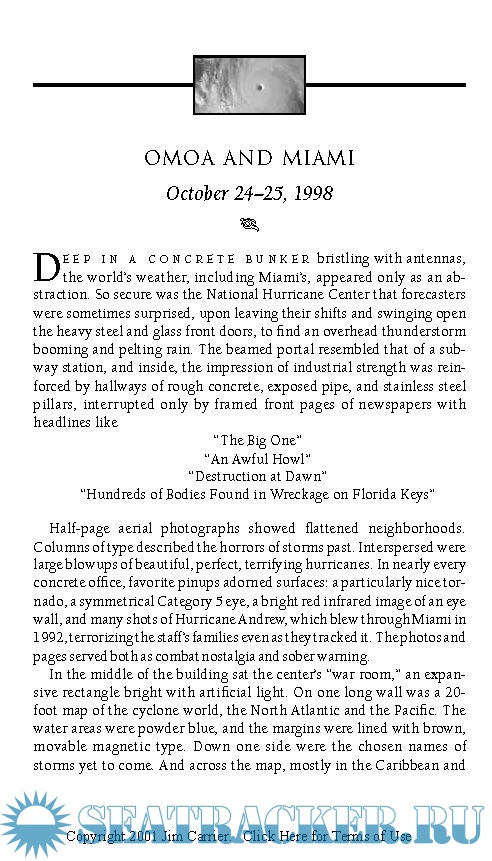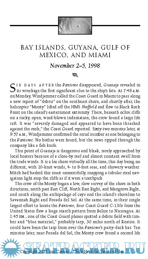 Year: 2001 Language: english Author: Jim Carrier Genre: Handbook Publisher: International Marine-McGraw-Hill ISBN: 9780071374558 Format: PDF Quality: eBook Pages count: 293 Description: In October 1998, Hurricane Mitch terrorized the Caribbean and Central America, leaving thousands dead, causing billions of dollars in damage, and crippling countries. In the midst of it struggled Guyan March, captain of the Fantome, the largest ship owned by Windjammer Barefoot Cruises. Having determined the Fantome was too big to seek safe harbour in any of the nearby ports, Windjammer and Captain March made the last-minute decision to take the ship out to sea in an attempt to get out of the storm's path. Carrier's account of this desperate race traces the development and erratic path of the storm as it consistently defied all predictions, relates the communications between Windjammer and the Fantome as they ran out of options and pieces together what must have been the last few minutes of the ship and of the crew's lives. The heart-wrenching testimony of the crew's families, horror stories of survivors on land, and scientific background from the meteorologists provide a thoroughly detailed context in which to view one of the worst hurricanes in recorded history.