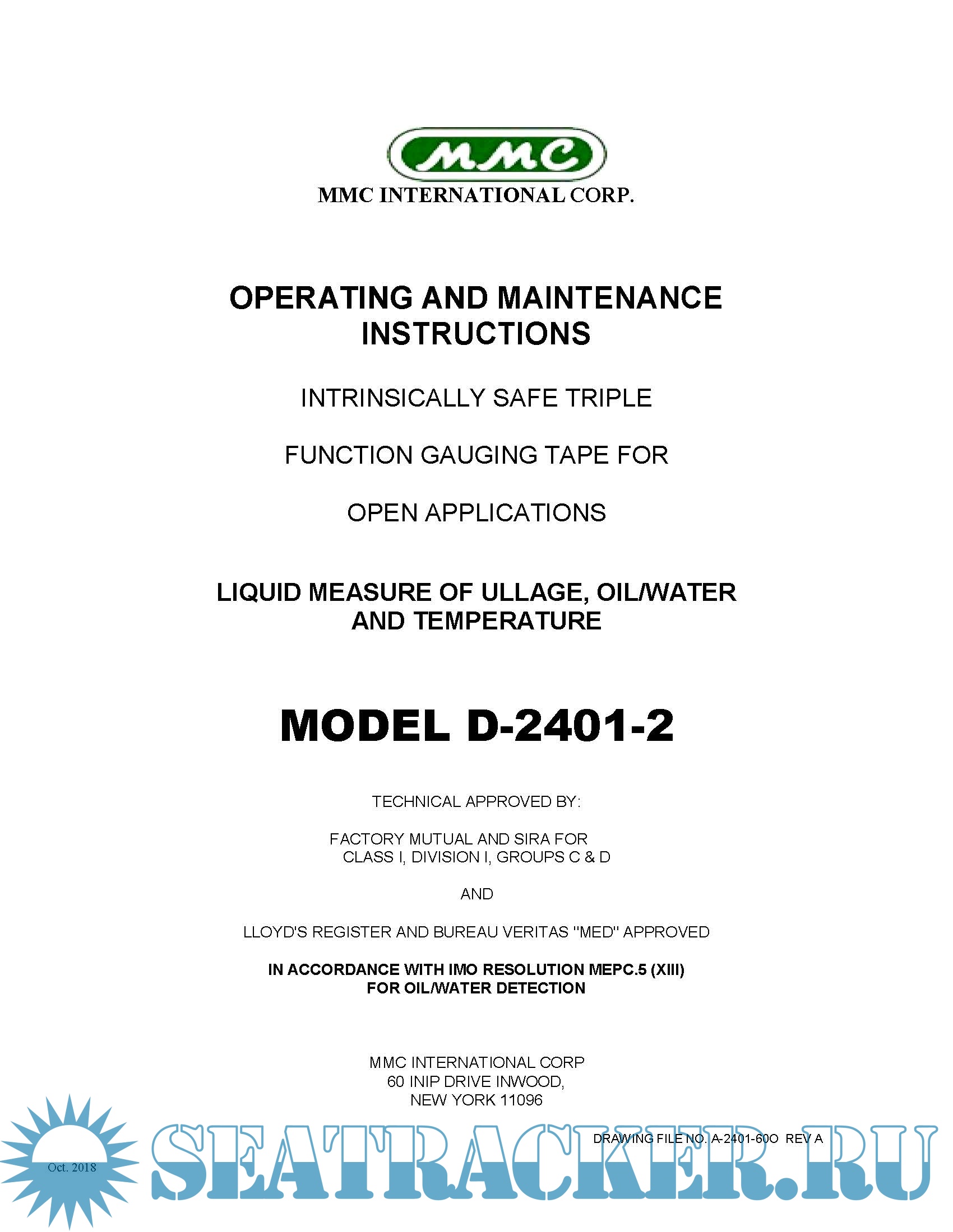 Operating and Maintenance Instructions, Intrinsically Safe Triple Function Gauging Tape for Open Applications Liquid Measure ff Ullage, Oil/Water and Temperature MODEL D-2401-2