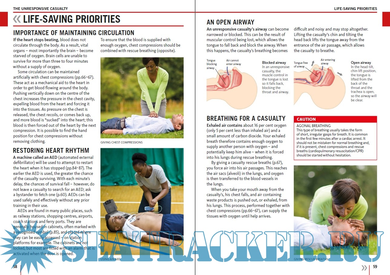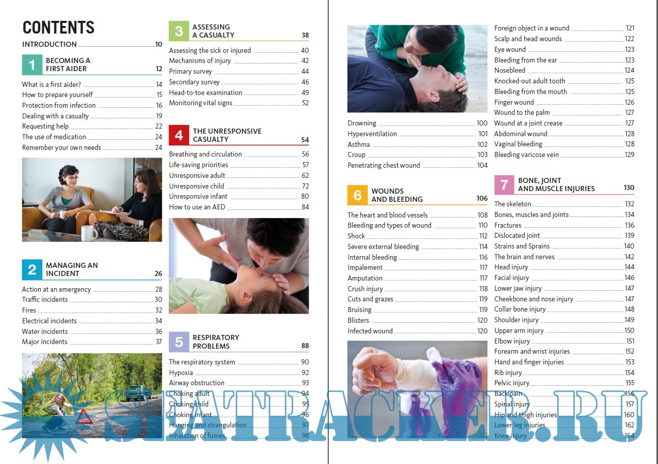 The first three chapters provide background information to help you examine your role as a first aider, manage a situation safely and learn how to assess a sick or injured person effectively. Treatment for injuries and conditions is given in specific chapters that follow. Lifesaving treatment for an unresponsive casualty has an entire chapter. In other chapters, injuries and conditions are grouped either by body system, for example Respiratory Problems or by the type of injury, such as Wounds and Bleeding and Effects of Heat and Cold.