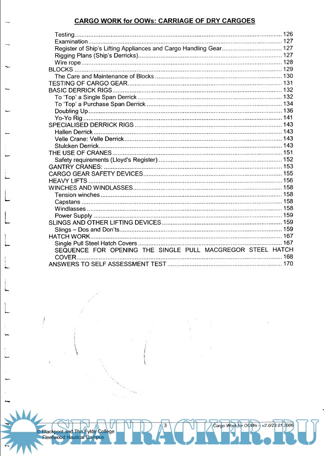 Year: 2006 Language: english Author: Blackpool and The Fylde College Fleetwood Nautical Campus Genre: Training courses Publisher: Blackpool and The Fylde College Fleetwood Nautical Campus Edition: v. 2.0 Format: PDF Quality: OCR with errors Pages count: 303 Description: Unit 4 : Cargo Work This unit introduces the learner to conducting a deck watch as a cargo officer. It involves the principle and safe working practice for monitoring the loading, stowage, securing and unloading of dry cargo and gas, liquid and chemical cargoes and their care during the voyage. It is primarily aimed at learners who intend to seek sea-going employment as a Merchant Navy Deck Officer. Contains 3 files: Carriage of Dry Cargoes & Volume 2: Carriage of Liquid Cargoes (Oil and Gas)