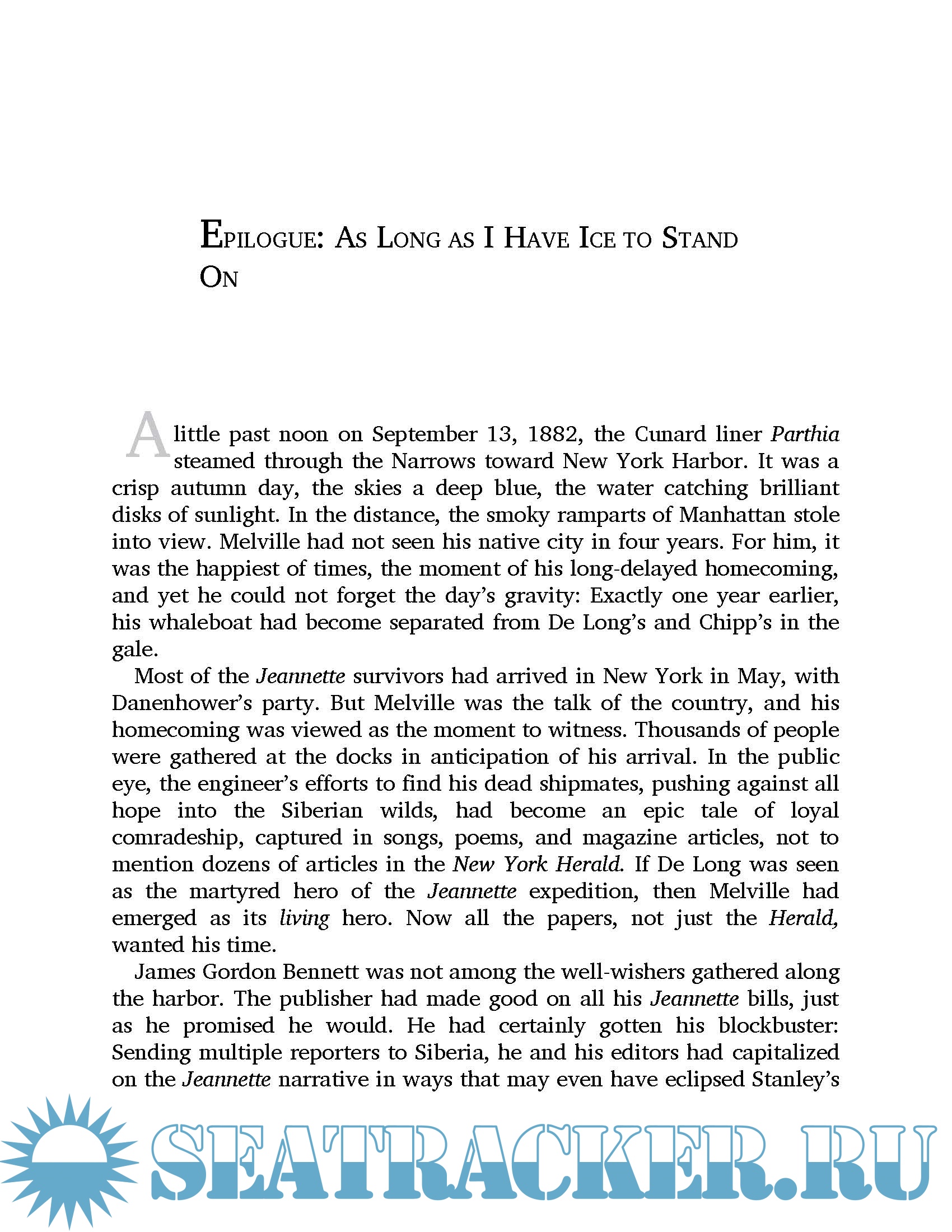 The ship sailed into uncharted seas, but soon was trapped in pack ice. Two years into the harrowing voyage, the hull was breached. Amid the rush of water and the shrieks of breaking wooden boards, the crew abandoned the ship. Less than an hour later, the Jeannette sank to the bottom, and the men found themselves marooned a thousand miles north of Siberia with only the barest supplies. Thus began their long march across the endless ice—a frozen hell in the most lonesome corner of the world. Facing everything from snow blindness and polar bears to ferocious storms and frosty labyrinths, the expedition battled madness and starvation as they desperately strove for survival.