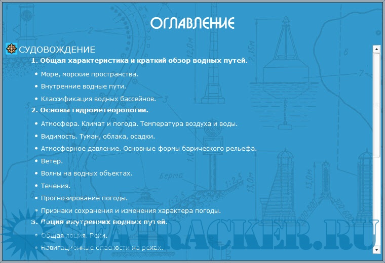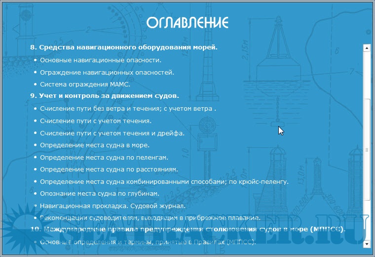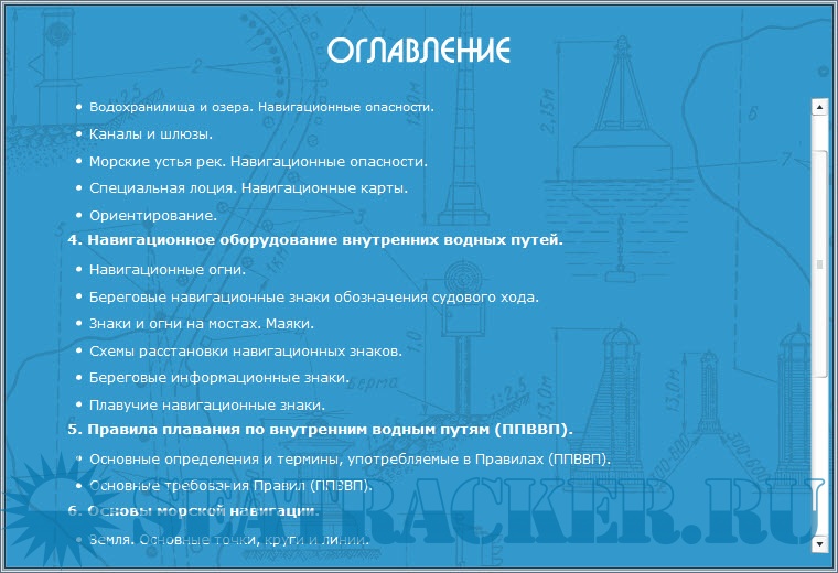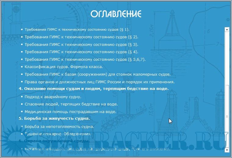 Описание: Обучающая программа для подготовки судоводителей маломерных судов - электронный учебник, предназначенный для подготовки к экзаменам на право управления маломерными судами, поднадзорными ГИМС МЧС России, в различных районах плавания.