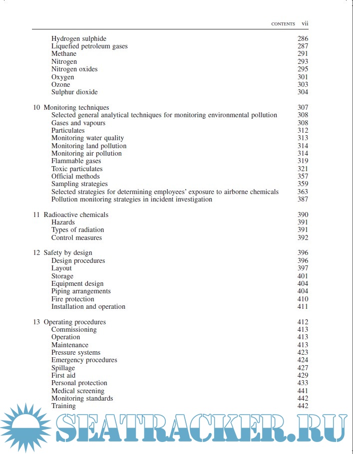 The book provides look-up data, and concise, clear explanations of general chemical principles, physiochemical and reactive properties, toxicities and exposure limits, flammability characteristics, monitoring techniques, personal protection and other parameters and requirements relating to compliance with designated safe practice, control of risks to people's health and limitation of environmental impact.