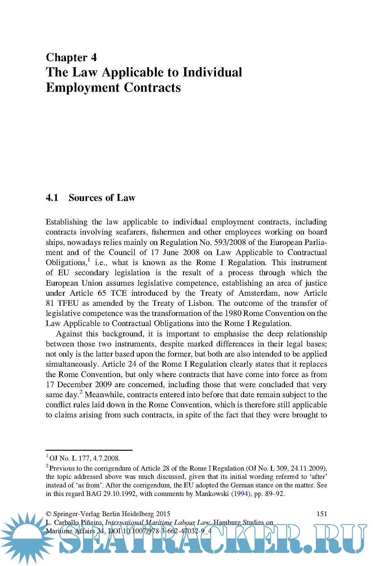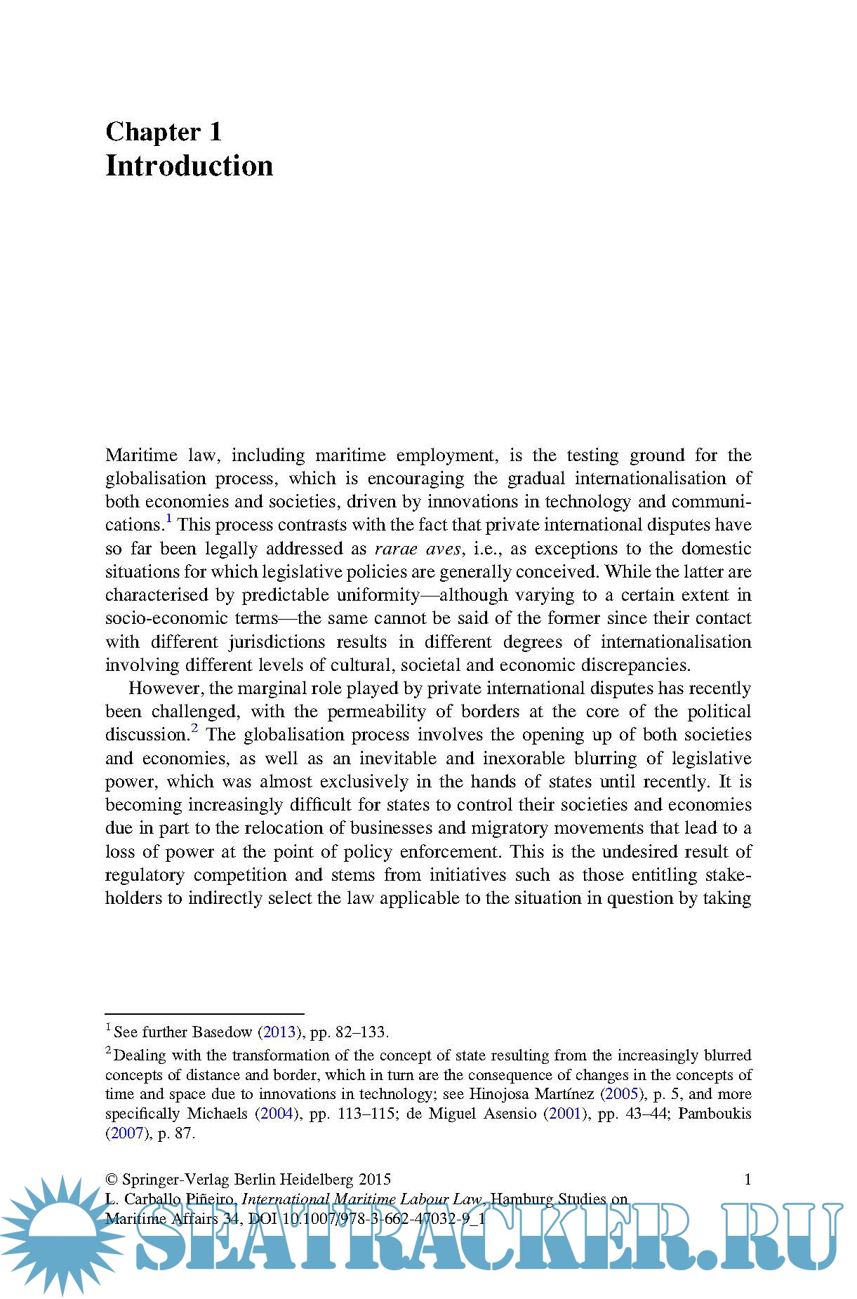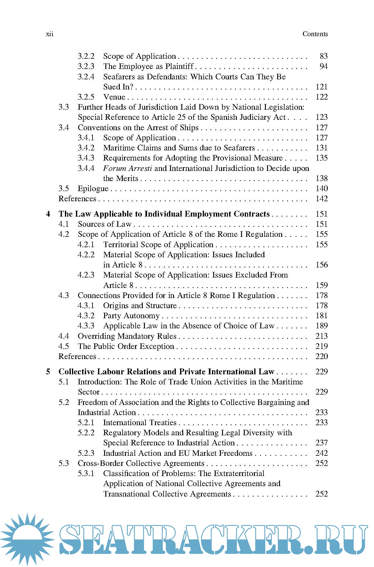 Description: This book focuses on maritime employment from a private international law perspective. The first chapter analyses the background against which international jurisdiction and conflict of laws rules are drawn up and examines uniform law in this context, in particular the 2006 Maritime Labour Convention and the 2007 ILO Convention No. 188 on Work in Fishing. The second chapter addresses international jurisdiction issues as regards individual employment contracts, while also exploring other issues (e.g. insolvency-related and social security matters) that are subsequently revisited in the third chapter while discussing conflict of laws issues related to said contracts. In turn, chapter four focuses on collective labour relations and private international law, i.e. collective agreements, strikes and other forms of collective action and information, and on the participation rights of employees in business matters.
