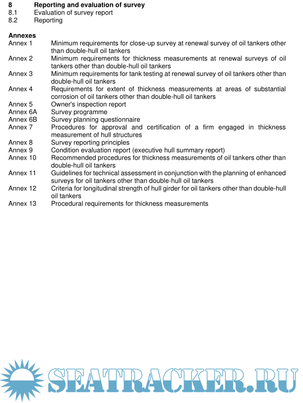 Parts A and B of annex A of the Code provide the requirements for bulk carriers with single-side skin and double-side skin construction respectively. Parts A and B of annex B of the Code provide the requirements for oil tankers with double-hull and non-double-hull construction respectively. The requirements of part A of annex B are also applicable to existing double hull tankers not complying with MARPOL regulation I/19, but which have a U-shaped midship section. For single-side skin combination carriers (ore and oil carriers) requirements are specified in the Code set out in part A of annex A and part B of annex B. For double-side skin combination carriers (ore and oil carriers) requirements are specified in the Code set out in part B of annex A and part A of annex B