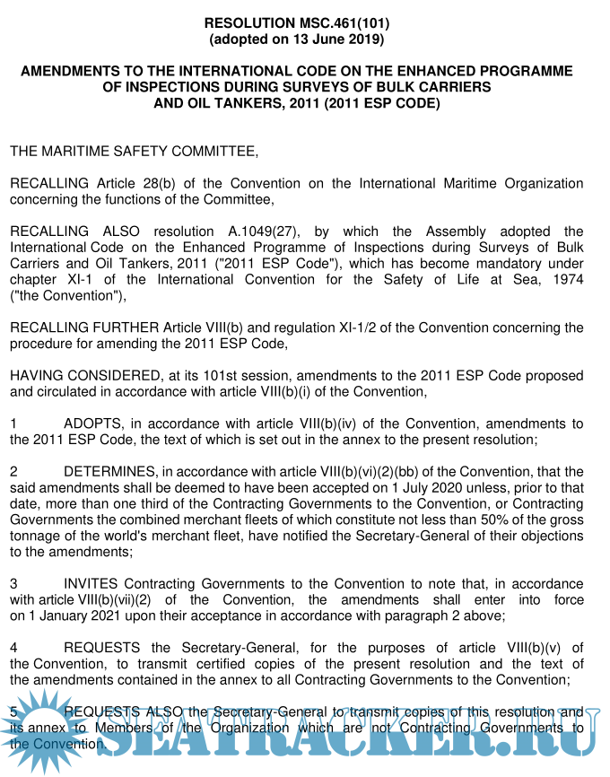 Description: New consolidated version of the International Code on the Enhanced Programme of Inspections During Surveys of Bulk carriers and Oil Tankers (ESP Code).