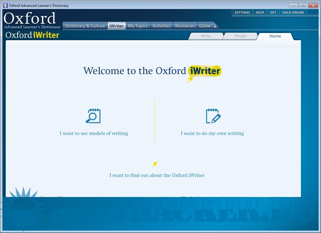 * Dictionary & Culture: The Oxford Advanced Learner’s Dictionary 8th edition plus entries from the Oxford Guide to British and American Culture * The Oxford iWriter * My Topics * Activities * Resources * The Oxford Advanced Learner's Genie