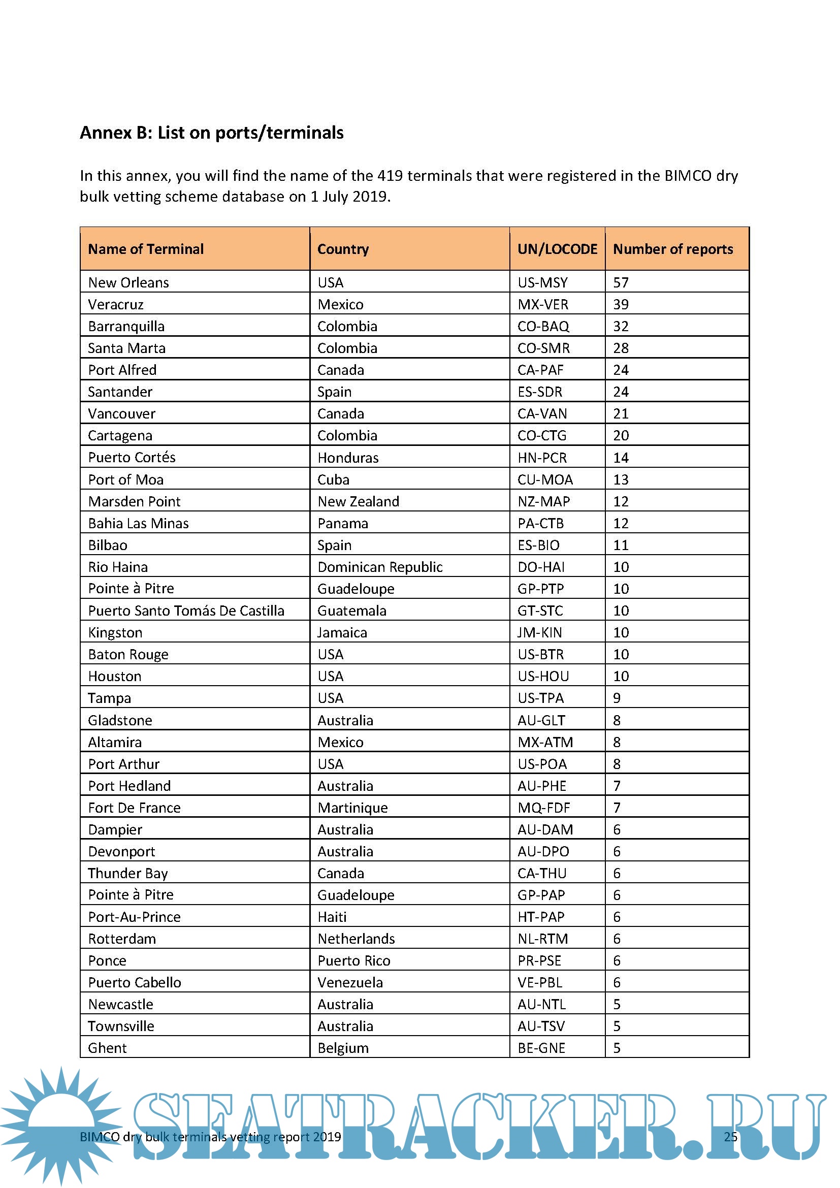 BIMCO’s Dry Bulk Terminals Vetting Report for 2019