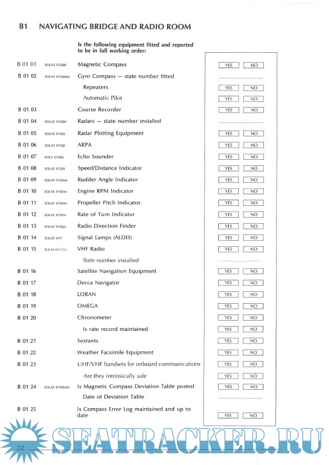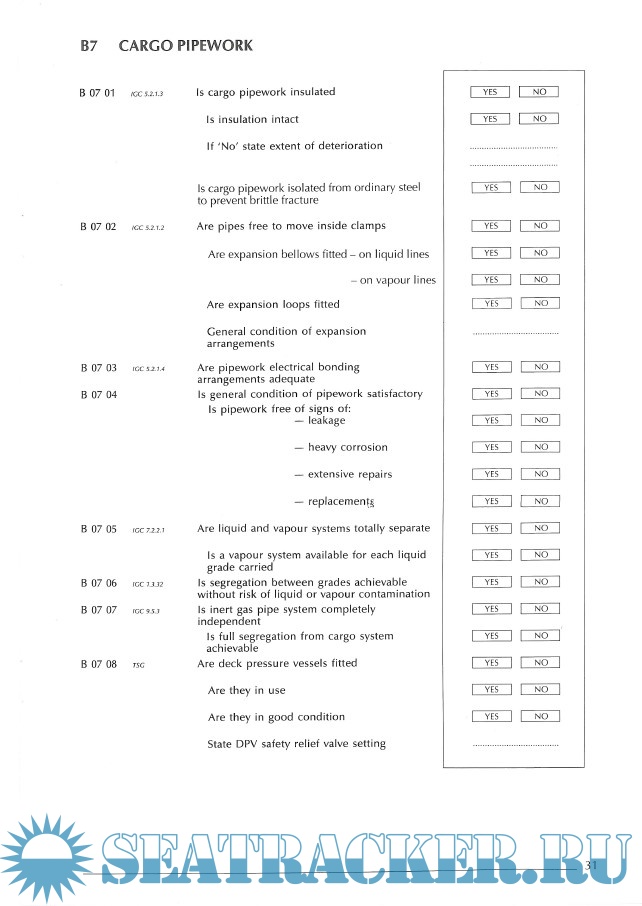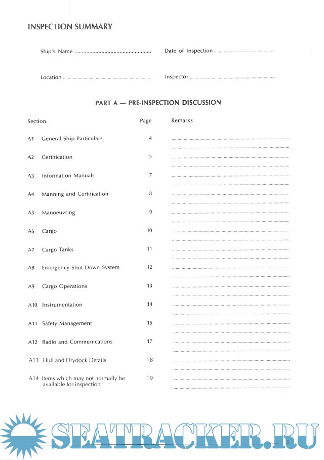 Description: The booklet is divided into two main sections, the first of which may be completed during discussion with the ship's master and contains information on items including safety management, manning, certification and documentation, cargo systems and instrumentation. The second section is completed during a visual inspection of the ship and contains information on safety and firefighting equipment, mooring arrangements, cargo tanks and cargo handling equipment, engine room and steering gear installations and bridge and radio room equipment and procedures. Individual items throughout the Guidelines have been comprehensively referenced to indicate the relevant IMO Convention or Code or accepted Industry Code to which they refer.