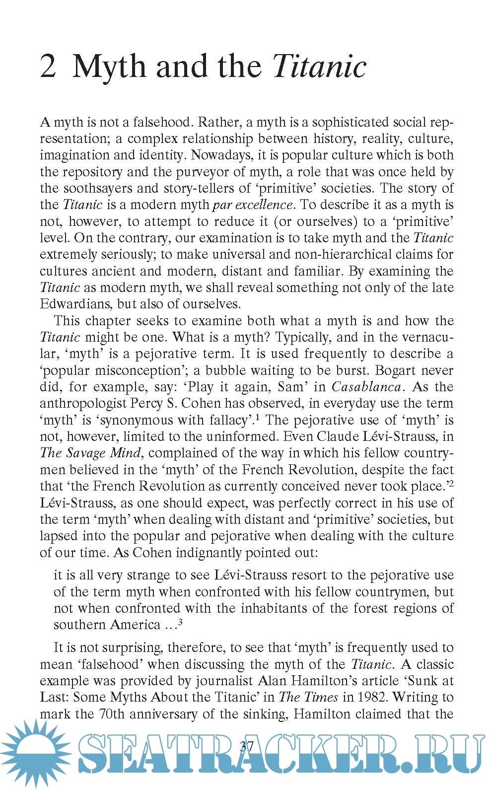 Year: 1999 Language: english Author: Richard Howells Genre: Handbook Publisher: MacMillan Press Ltd. ISBN: 0–333–72597–2 Format: PDF Quality: eBook Pages count: 226 Description: The first critical analysis of the Titanic as modern myth, this book focuses on the second of the two Titanics. The first was the physical Titanic, the rusting remains of which can still be found twelve thousand feet below the north Atlantic. The second is the mythical Titanic which emerged just as its tangible predecessor slipped from view on 15 April 1912. It is the second of the two Titanics which remains the more interesting and which continues to carry cultural resonances today. The Myth of the Titanic begins with the launching of the 'unsinkable ship' and ends with the outbreak of the 'war to end all wars'. It provides an insight into the particular culture of late-Edwardian Britain and beyond this draws far greater conclusions about the complex relationship between myth, history, popular culture and society as a whole.
