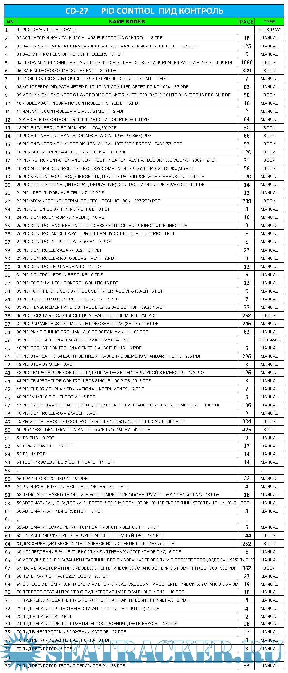 NAME BOOKS PAGE 01 PID GOVERNOR BT DEMO\ 02 ACTUATOR NAKAKITA NUCOM-L40S ELECTRONIC CONTROL 18.PDF 18 03 BASIC-INSTRUMENTATION-MEASURING-DEVICES-AND-BASIC-PID-CONTROL 125.PDF 125 04 BASIC PRINCIPLES OF PID CONTROLLERS 6.PDF 6 05 INSTRUMENT-ENGINEERS-HANDBOOK-4-ED-VOL 1 PROCESS-MEASUREMENT-AND-ANALYSIS 1886.PDF 1886 06 ISA HANDBOOK OF MEASUREMENT 309.PDF 309 07 IYCNET QUICK START GUIDE TO USING PID BLOCK IN LOGIX500 7.PDF 7 08 KONGSBERG PID PARAMETER DURING G T SCANNED AFTER PRINT 1554 83.PDF 83 09 MECHANICAL ENGINEER'S HANDBOOK 2-ED MYER KUTZ 1998 BASIC CONTROL SYSTEMS DESIGN.PDF 50 10 MODEL 43AP PNEUMATIC CONTROLLER, STYLE B 16.PDF 16 11 NAKAKITA CONTROLLER PID ADJUSTMENT 2.PDF 2 12 P-PD-PI-PID CONTROLLER SEE402 RECITATION REPORT 64.PDF 64 13 PID-ENGINEERING BOOK MARK 1704(30).PDF 30 14 PID-ENGINEERING HANDBOOK MECHANICAL 1998 2353(66).PDF 66 15 PID-ENGINEERING HANDBOOK MECHANICAL 1999 (CRC PRESS) 2466 (57).PDF 57 16 PID-GOOD-TUNING-A-POCKET-GUIDE ISA 120.PDF 120 17 PID-INSTRUMENTATION AND CONTROL FUNDAMENTALS HANDBOOK 1992 VOL 1-2 288 (71).PDF 71 18 PID-MODERN CONTROL TECHNOLOGY COMPONENTS & SYSTEMS 2-ED 635(58).PDF 58 19 PID & FUZZY REGUL МОДУЛЬНОЕ ПИД-И FUZZY-РЕГУЛИРОВАНИЕ SIEMENS RU 120.PDF 120 20 PID (PROPORTIONAL, INTEGRAL, DERIVATIVE) CONTROL WITHOUT PH F WESCOT 14.PDF 14 21 PID - РЕГУЛИРОВАНИЕ ЛЕКЦИЯ 12.PDF 12 22 PID ADVANCED INDUSTRIAL CONTROL TECHNOLOGY 827(239).PDF 239 23 PID COHEN COON TUNING METHOD 3.PDF 3 24 PID CONTROL (FROM WIKIPEDIA) 16.PDF 16 25 PID CONTROL ENGINEERING - PROCESS CONTROLLER TUNING GUIDELINES.PDF 9 26 PID CONTROL MADE EASY EUROTHERM BY SCHNEIDER ELECTRIC 6.PDF 6 27 PID CONTROL NI-TUTORIAL-6163-EN 6.PDF 6 28 PID CONTROLLER ADAM-4022T 27.PDF 27 29 PID CONTROLLER KONGSBERG - REV1 9.PDF 9 30 PID CONTROLLER PNEUMATIC 12.PDF 12 31 PID CONTROLLERS IN BESTUNE 5.PDF 5 32 PID FOR DUMMIES - CONTROL SOLUTIONS.PDF 12 33 PID FOR THE CRUISE CONTROL USER INTERFACE VI -6163-EN 6.PDF 6 34 PID HOW DO PID CONTROLLERS WORK 7.PDF 7 35 PID MEASUREMENT AND CONTROL BASICS 3RD EDITION 390(77).PDF 77 36 PID MODULAR МОДУЛЬНОЕПИД-УПРАВЛЕНИЕ SIEMENS 258.PDF 258 37 PID PARAMETERS LIST MODULE KONGSBERG IAS (SHIPS) 246.PDF 246 38 PID PMAC TUNING PRO MANUALS PROGRAM MANUAL 63.PDF 63 39 PID REGULATOR NA ПРАКТИЧЕСКИХ ПРИМЕРАХ.ZIP 40 PID ROBUST CONTROL VIA GENETIC ALGORITHMS 6.PDF 6 41 PID STANDARTСТАНДАРТНОЕ ПИД УПРАВЛЕНИЕ SIEMENS STANDART PID RU 286.PDF 286 42 PID STEP BY STEP 3.PDF 3 43 PID TEMPERATURE CONTROL ПИД-УПРАВЛЕНИЕ ТЕМПЕРАТУРОЙ SIEMENS RU 126.PDF 126 44 PID TEMPERATURE CONTROLLERS SINGLE LOOP RB100 3.PDF 3 45 PID THEORY EXPLAINED - NATIONAL INSTRUMENTS 7.PDF 7 46 PID WHAT IS PID - TUTORIAL 5.PDF 5 47 PID СИСТЕМА АВТОНАСТРОЙКИ ДЛЯ СИСТЕМ ПИД-УПРАВЛЕНИЯ TUNER SIEMENS RU 186.PDF 186 48 PID CONTROLLER GR ΣΆΡΩΣΗ 2.PDF 2 49 PRACTICAL PROCESS CONTROL FOR ENGINEERS AND TECHNICIANS 304.PDF 304 50 PROCESS IDENTIFICATION AND PID CONTROL WILEY 425.PDF 425 51 TC-RUS 3.PDF 3 52 TC4-INSTR-RUS 17.PDF 17 53 TC 14.PDF 14 54 TEST PROCEDURES & CERTIFICATE 14.PDF 14 56 TRAINING BG 6 PID RV1 22.PDF 22 57 UNIVERSAL PID CONTROLLER-362MC-PROSE 4.PDF 4 58 USING A PID-BASED TECHNIQUE FOR COMPETITIVE ODOMETRY AND DEAD-RECKONING 18.PDF 18 59 АВТОМАТИЗАЦИЯ СУДОВЫХ ЭНЕРГЕТИЧЕСКИХ УСТАНОВОК. КОНСПЕКТ ЛЕКЦИЙ КРЕСТЛИНГ Н.А. 2010 .PDF 60 АВТОМАТИКА ПИД-РЕГУЛЯТОР 3.PDF 3 . . 62 АВТОМАТИЧЕСКИЕ РЕГУЛЯТОР РЕАКТИВНОЙ МОЩНОСТИ 5.PDF 5 63 ГИДРАВЛИЧЕСКИЕ РЕГУЛЯТОРЫ БА0180 В.П.ТЕМНЫЙ 1966 144.PDF 144 64 ДИФФЕРЕНЦИАЛЬНОЕ И ИТЕГРАЛЬНОЕ ИСЧИСЛЕНИЕ КОШИ 183 252.PDF 252 65 ИССЛЕДОВАНИЕ ЭФФЕКТИВНОСТИ АДАПТИВНЫХ АЛГОРИТМОВ ПИД 6.PDF 6 66 МЕТОДИЧЕСКИЕ УКАЗАНИЯ И ТАБЛИЦЫ ДЛЯ ВЫБОРА НАСТРОЕК ПИ И П РЕГУЛЯТОРОВ (ОДЕССА, 1975) ПИД КОН Л.И. (50 ) ((0769 )).PDF 67 НАЛАДКА АВТОМАТИКИ СУДОВЫХ ЭНЕРГЕТИЧЕСКИХ УСТАНОВОК В.Ф. СЫРОМЯТНИКОВ 1989 352.PDF 352 68 НЕЧЕТКАЯ ЛОГИКА FOZZY LOGIC 27.PDF 27 69 ОСНОВЫ АВТОМ И КОМПЛЕКСНАЯ АВТОМАТИЗАЦ СУДОВЫХ ПАРОЕНЕРГЕТИЧЕСКИХ УСТАНОВ СЫРОМЯТНИКОВ 1983 (312) ((0340 )).PDF 19 70 ПЕРЕВОД СТАТЬИ ПРОСТО О ПИД-АЛГОРИТМАХ PID WITHOUT A PHD 18.PDF 18 71 ПИД-РЕГУЛИРОВАНИЕ (ПИД-РЕГУЛЯТОР) НА ПРАКТИЧЕСКИХ ПРИМЕРАХ 8.PDF 8 72 ПИД-РЕГУЛЯТОР (ЧАСТНЫЕ СЛУЧАИ П,ПД, ПИ-РЕГУЛЯТОР) 4.PDF 4 73 ПИД-РЕГУЛЯТОР 2.PDF 2 74 ПИД-РЕГУЛЯТОРЫ PID ПРИНЦИПЫ ПОСТРОЕНИЯ ДЕНИСЕНКО В. 28.PDF 28 75 ПИД В НЕСТРОГОМ ИЗЛОЖЕНИИ КАРПОВ 27.PDF 27 76 ПИД РЕГУЛИРОВАНИЕ НАСТРОЙКА 8.PDF 8 77 ПИД РЕГУЛЯТОР 3.PDF 3 . . 79 ПИД РЕГУЛЯТОР ТЕОРИЯ РЕГУЛИРОВКА 33.PDF 33 80 ПИД РЕГУЛЯТОРЫ НАСТРОЙКА 14.PDF 14 81 ПИД ТЕХНИЧЕСКИЕ СРЕДСТВА АВТОМАТИЗАЦИИ СЭУ ЖУРЕНКО ТАРАНЧУК 1990 328(52).PDF 52 82 ПИД УПРАВЛЯЮЩИЕ СИСТЕМЫ И АВТОМАТИКА ШМИД 2007 586 (47).PDF 47 83 ПИД СУДОВАЯ ЭЛЕКТРОНИКА И ЭЛЕКТРОАВТОМАТИКА БЕЛОУСОВ 644(15).PDF 15 84 ПНЕВМАТИЧЕСКИЕ РЕГУЛЯТОРЫ БА0174 В.С.ПРУСЕНКО 1966 283.PDF 283 85 ПРАКТИЧЕСКОЕ РУКОВОДСТВО ПО НАСТРОЙКЕ ПАРАМЕТРОВ ПИД-РЕГУЛЯТОРА ДЛЯ КОНТРОЛЛЕРА 4 86 ПРИ