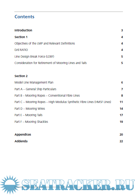 Year: 2019 Language: english Author: INTERTANKO Genre: Guide Publisher: INTERTANKO Edition: V1 – Feb 2019 Format: PDF Quality: Scanned pages + text layer Pages count: 25 Description: MEG4 stresses that it is the responsibility of the operator to ensure the proper development and implementation of the LMP. As with the Mooring System Management Plan Register (MSMPR), it is a live document and can be held either in hard or soft version. It should, however, be integrated into the ship’s document control system and be subject to change management controls to ensure a complete history. The LMP should be easily accessible for internal and external compliance verification, ship personnel training and communication with manufacturers by those who need to use it. Additional info: The LMP contains the ship operator’s requirements for the management of mooring line maintenance, inspection and retirement during the operational phase of the mooring line lifecycle. The LMP can be a standalone tool or it may be integrated into existing safety or maintenance management systems. It can be available as hard or electronic copy, or both. The LMP should be capable of being updated and should be accessible for internal and external compliance verification, ship personnel training and communication with manufacturers. LMP information should be stored in a location that is easy for all users to access.