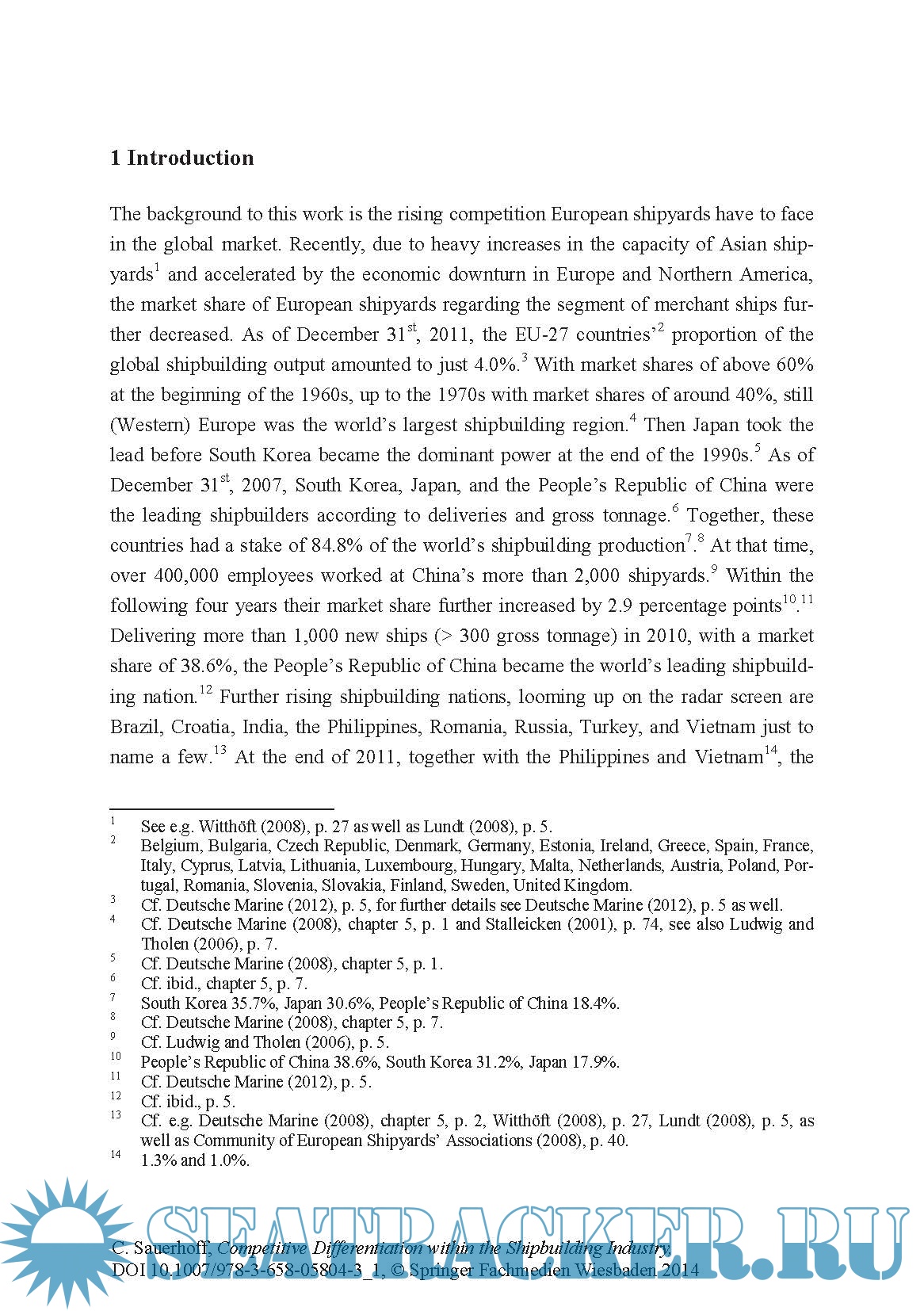 Year: 2014 Language: english Author: Christopher Sauerhoff Genre: Handbook Publisher: Springer ISBN: 978-3-658-05804-3 Format: PDF Quality: eBook Pages count: 249 Description: European shipyards face a rising competition in the global market. Christopher Sauerhoff investigates such aspects as a shipyard’s market expertise, its practical experiences and its cooperative activities. He analyses whether there is a relationship between each of these aspects and those resources and capabilities constituting the basis for a shipyard’s competence in the field of services. The author conducts focused interviews with 26 experts from the shipbuilding industry. Based on the findings of the interviews, he subsequently carries out an international survey addressed to shipyards’ management representatives. The results indicate that there is the chance for European shipyards to improve their position in the global shipbuilding industry by offering not only customized high-tech ships of best quality, but also technical service packages and therewith adding further value for their customers.