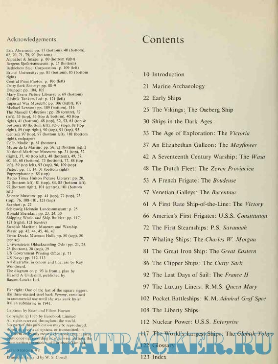 Year: 1976 Language: english Author: Abranson E. Genre: History Publisher: Eurobooks ISBN: 0-85654-019-6 Format: PDF Quality: Scanned pages Pages count: 128 Description: Nineteen famous ships, from a Viking longship to a modern supertanker, show the changing world of man and the sea at peace and at war. Seen in sequence, the ships illustrate the gradual evolution from small vessels, dependent on manpower, winds and weather, to the selfcontained floating cities of today, navigated by computer and driven by nuclear power. In between come ships from the great days of sail, pioneers of steam, historic battleships and luxury liners. Each ship is dramatically but accurately illustrated with a full colour painting and there are also line drawings, photographs and cutaway plans. A fully illustrated introduction gives technical details on hulls, sails, rigging and engine types and there is a section on nautical archaeology.
