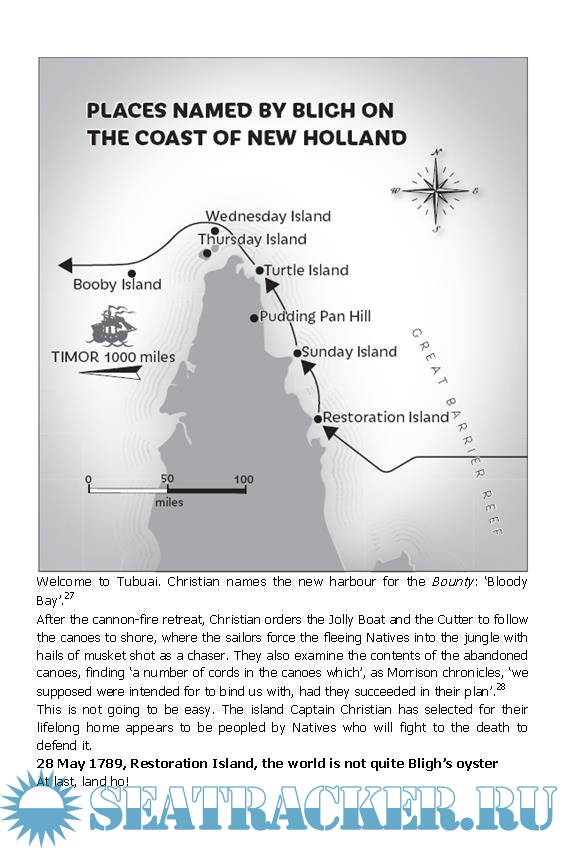 Commissioned by the Royal Navy to collect breadfruit plants from Tahiti and take them to the West Indies, the Bounty's crew found themselves in a tropical paradise. Five months later, they did not want to leave. Under the leadership of Fletcher Christian most of the crew mutinied soon after sailing from Tahiti, setting Captain William Bligh and 18 loyal crewmen adrift in a small open boat. In one of history's great feats of seamanship, Bligh navigated this tiny vessel for 3618 nautical miles to Timor.