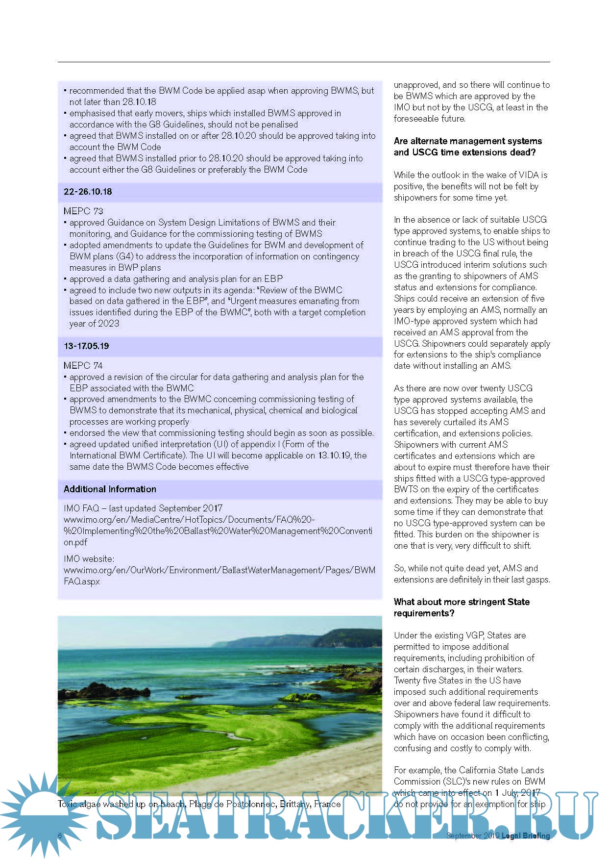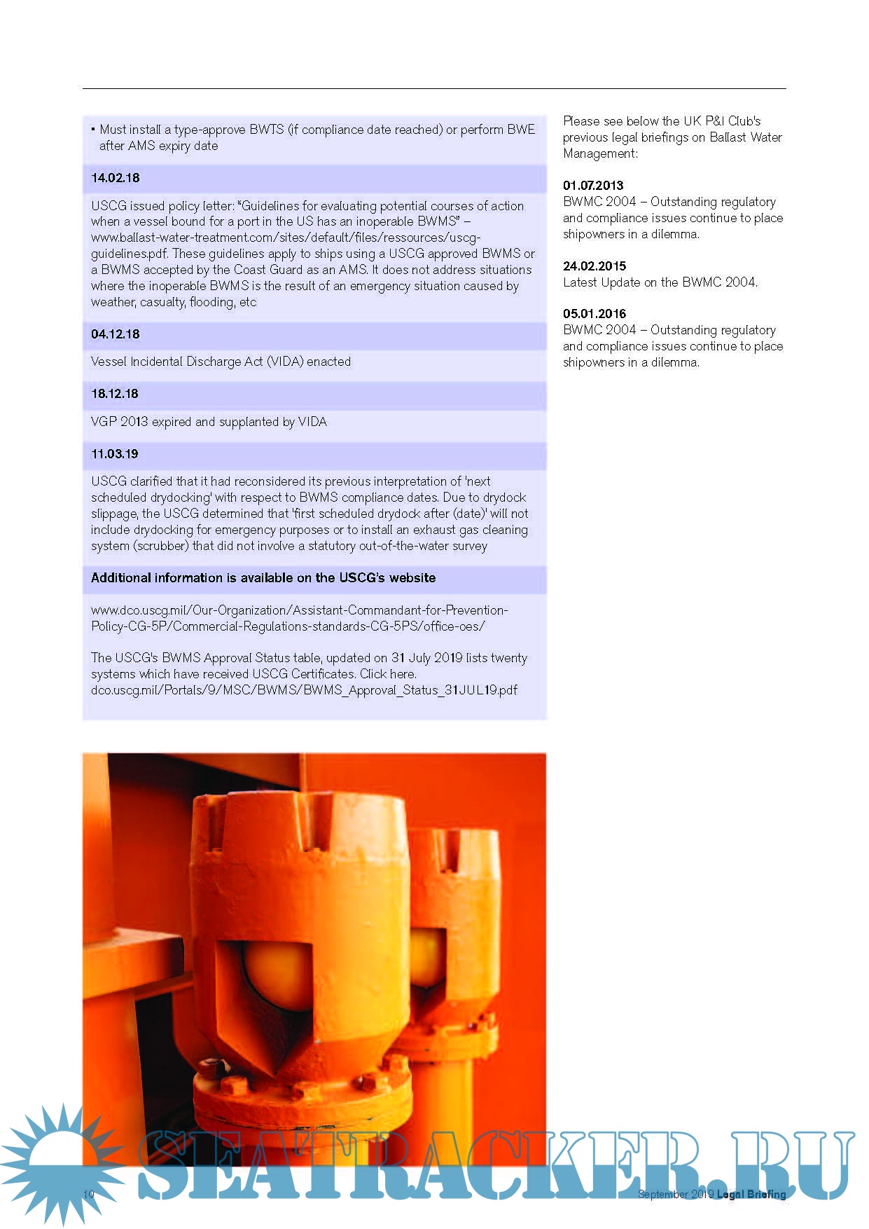 Legal Briefing - Sharing the Club’s legal expertise and experience, IMO Ballast Water Management Convention 2004 USCG Ballast Water Management Regulations