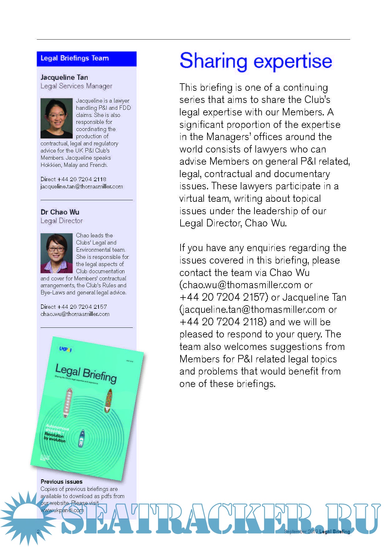 Description: This briefing is one of a continuing series that aims to share the Club’s legal expertise with our Members. A significant proportion of the expertise in the Managers’ offices around the world consists of lawyers who can advise Members on general P&I related, legal, contractual and documentary issues.