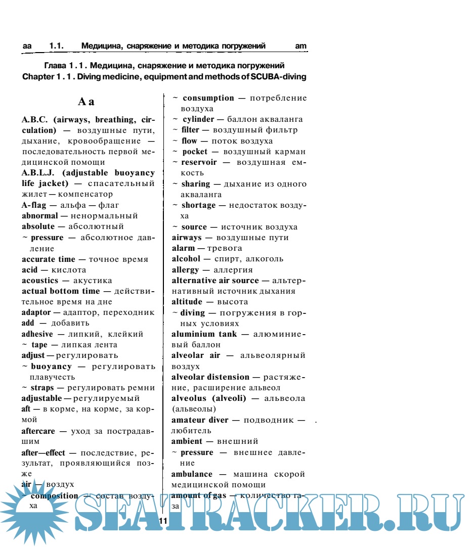 Англо-русский русско-английский подводный словарь аквалангиста / English-Russian Russian-English Diving Dictionary for Scuba Divers