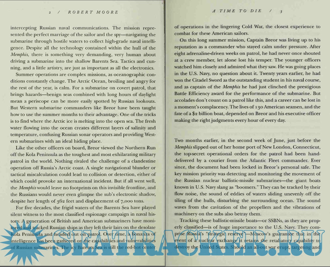 In A Time to Die, a critically acclaimed best-seller in the United Kingdom, international reporter Robert Moore—who covered the Kursk tragedy from Russia as it happened—draws on exclusive access he obtained to top Russian military figures in telling the inside story of the disaster with the factual depth of the best journalism and the compelling moment-by-moment tension of a thriller. He takes us right down inside the Kursk as two massive explosions—the second measuring 3.5 on the Richter scale—rip through compartment after compartment. Bringing the horror of the explosions vividly to life, he details the agonizing drama of the twenty-three men who survived as they fight against time to be rescued.