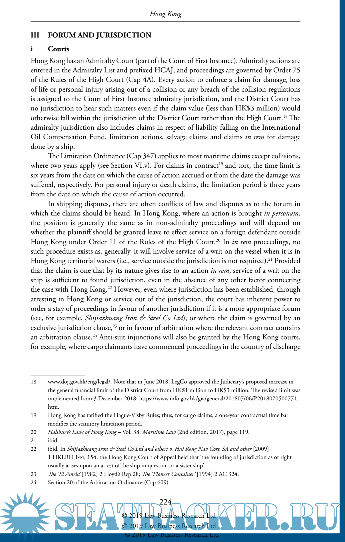 Each jurisdictional chapter gives an overview of the procedures for handling shipping