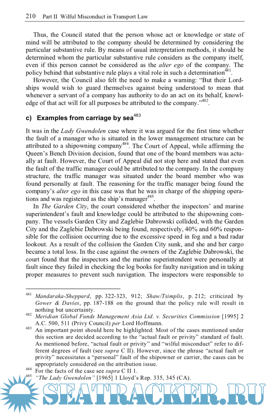 Year: 2011 Language: english Author: Duygu Damar Publisher: Springer Edition: 1st ISBN: 978-3-642-21509-4 Format: PDF Quality: OCR with errors Pages count: 316 Description: The main rationale of the conventions on international transport law is to limit the liability of the carrier. However, an aspect common to these conventions is that in cases of "wilful misconduct" the carrier is liable without any financial limitation. "Wilful misconduct" denoting a high degree of fault is an established term in English law. The Convention for the Unification of Certain Rules relating to International Carriage by Air (Warsaw Convention) of 1929 was the first international convention on transport law where the term was employed. A definition of "wilful misconduct", which can be found in later conventions regarding carriage of goods and passengers as well, was implemented in the Hague Protocol of 1955, amending the Warsaw Convention. However, the question as to exactly which degree of fault constitutes "wilful misconduct" has to date remained controversial and unanswered. This work seeks to answer this question. To this end, the historical background of the term, together with its function and role in marine insurance law, case law and international transport law, are examined from a comparative perspective. Additional info: Hamburg Studies on Maritime Affairs Vol. 22