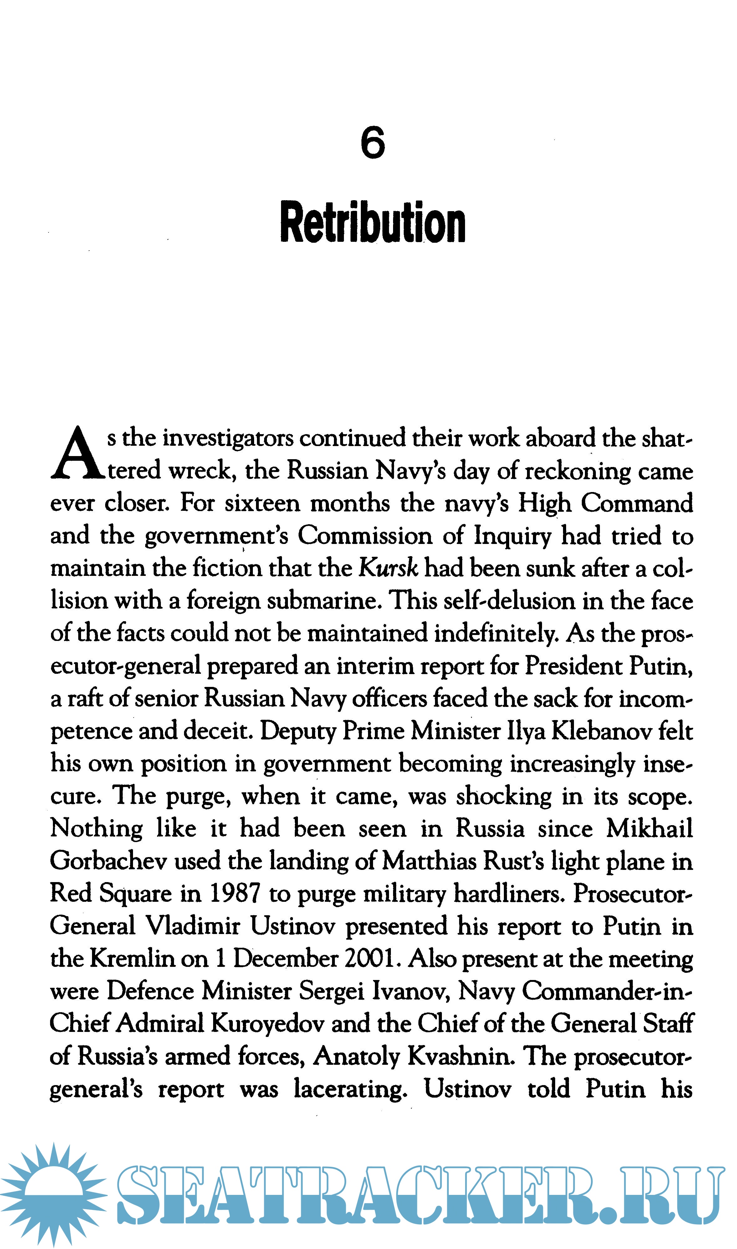 Year: 2003 Language: english Author: Truscott P. Genre: History Publisher: Simon & Schuster Ltd ISBN: 978-0743449410 Format: DjVu Quality: Scanned pages Pages count: 297 Description: In the worst peacetime disaster experienced by the Russian Navy, on 12 August 2000 the state-of-the-art nuclear-powered Kursk submarine sank with the loss of 118 officers and crew. The sinking was a humanitarian, environmental, and military catastrophe for Russia, and a powerful political reversal for President Putin But what really happened? Peter Truscott, former Foreign Affairs and Defence spokesperson in the European Parliament and Vice-President of the Security Committee, aims to provide the answers. An expert on Russia, with a modern history doctorate from Oxford University, Truscott has met President Mikhail Gorbachev, three Russian Prime Ministers, two parliamentary Speakers and the leaders of all Russia's political parties over the past decade. For this book, the author has also interviewed relatives of the crew; Russian, British and American nuclear submarine commanders; international torpedo experts; politicans; diplomats; British and Norwegian rescue teams and their leaders; submariners; seismologists and members of the defence and intelligence communities This work vividly re-creates the terrible final hours of the crew as they waited in vain for rescue .