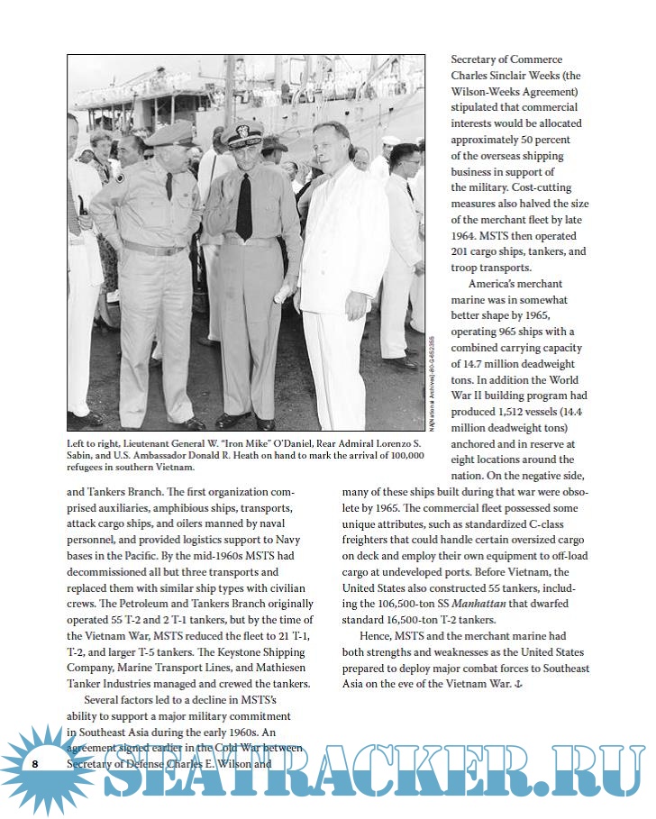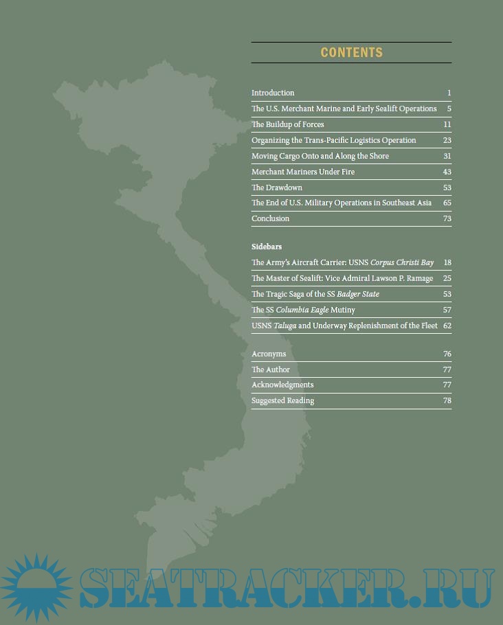 This publication focuses on the sealift and logistics operations performed by the U.S. Navy in the Vietnam War and includes a number of photographs as well as sidebars detailing specific people and ships involved in the logistic operations.