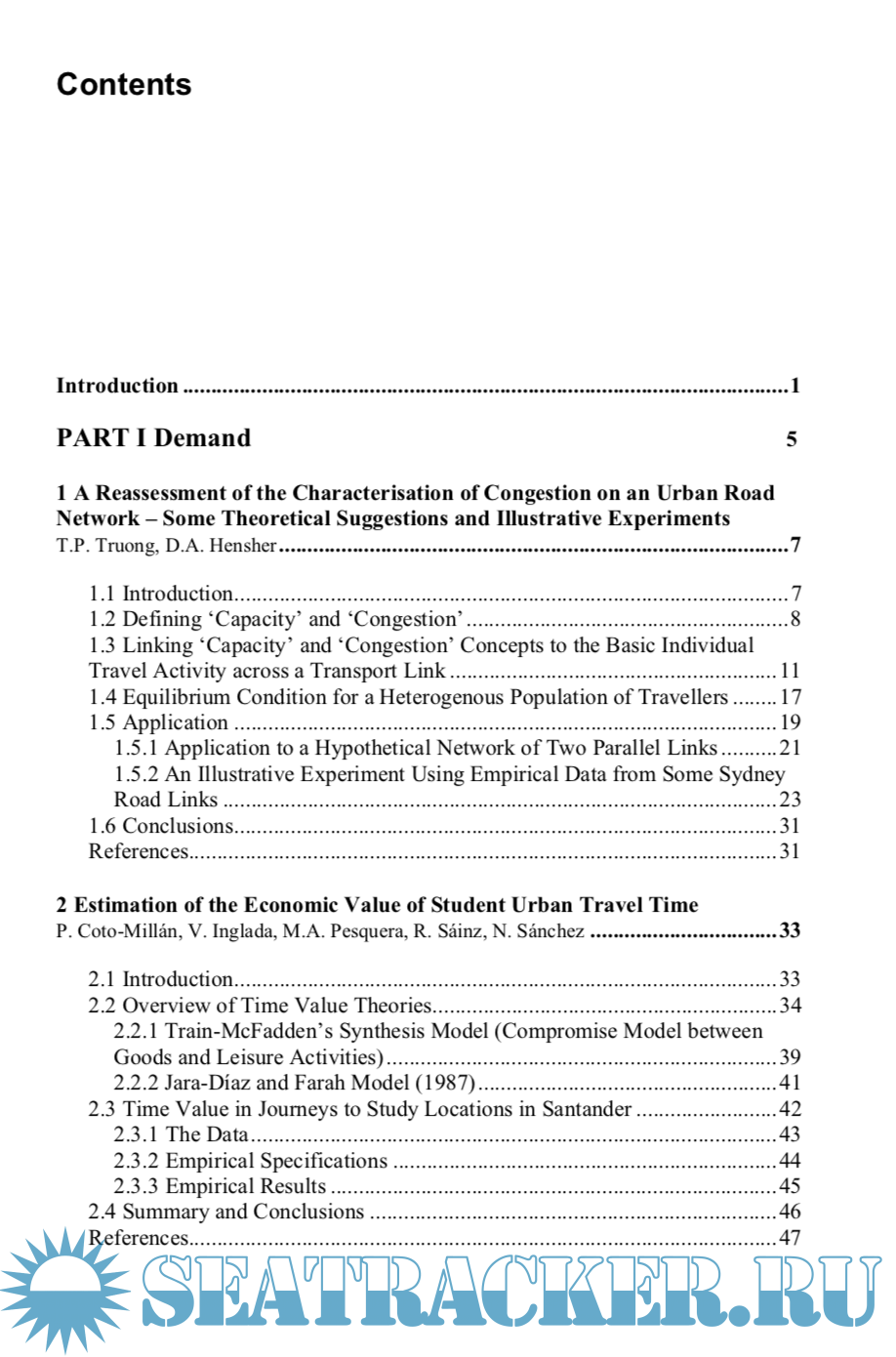 Year: 2007 Language: english Author: Coto-Millán Pablo, Inglada Vicente Genre: Reference book Publisher: Physica-Verlag Heidelberg Edition: 1st ISBN: 978-3-7908-1765-2 Format: PDF Quality: OCR without errors Pages count: 381 Description: This book covers the basic analytical methods used in transportation economics and policy analysis. Encompassing fields of economics such as Industrial Organisation, Welfare Economics, General Equilibrium Theory and Input-Output-Analysis, the study of transport from an economic point of view serves as a test bench for applying the methodological developments of economic science to the real world.