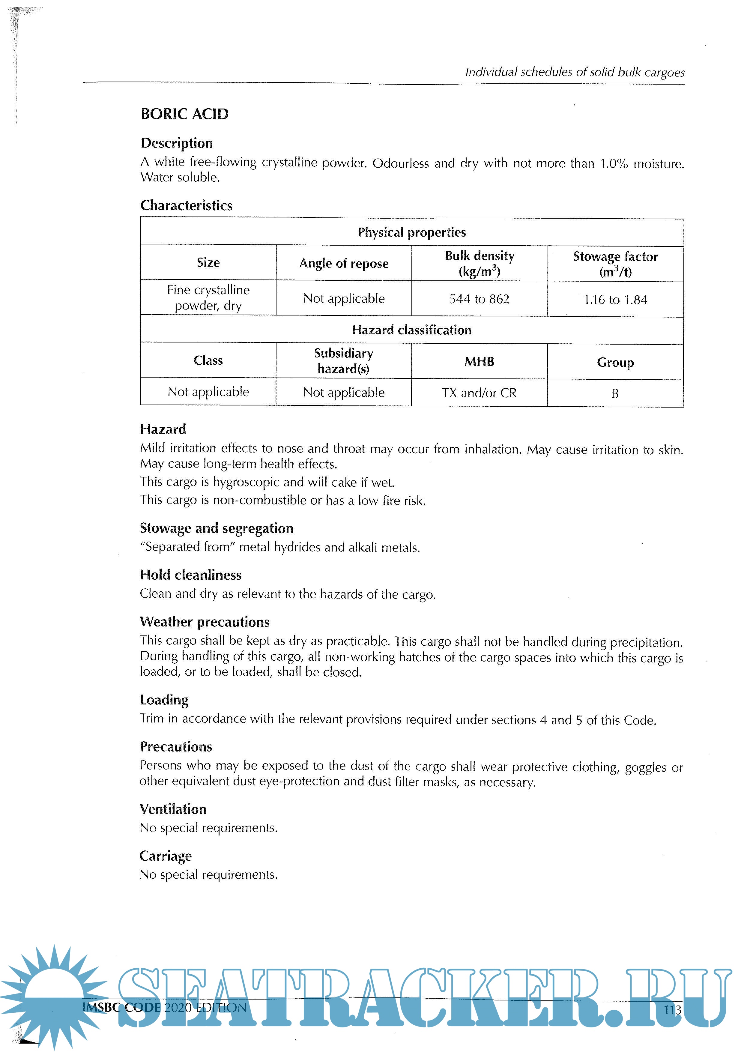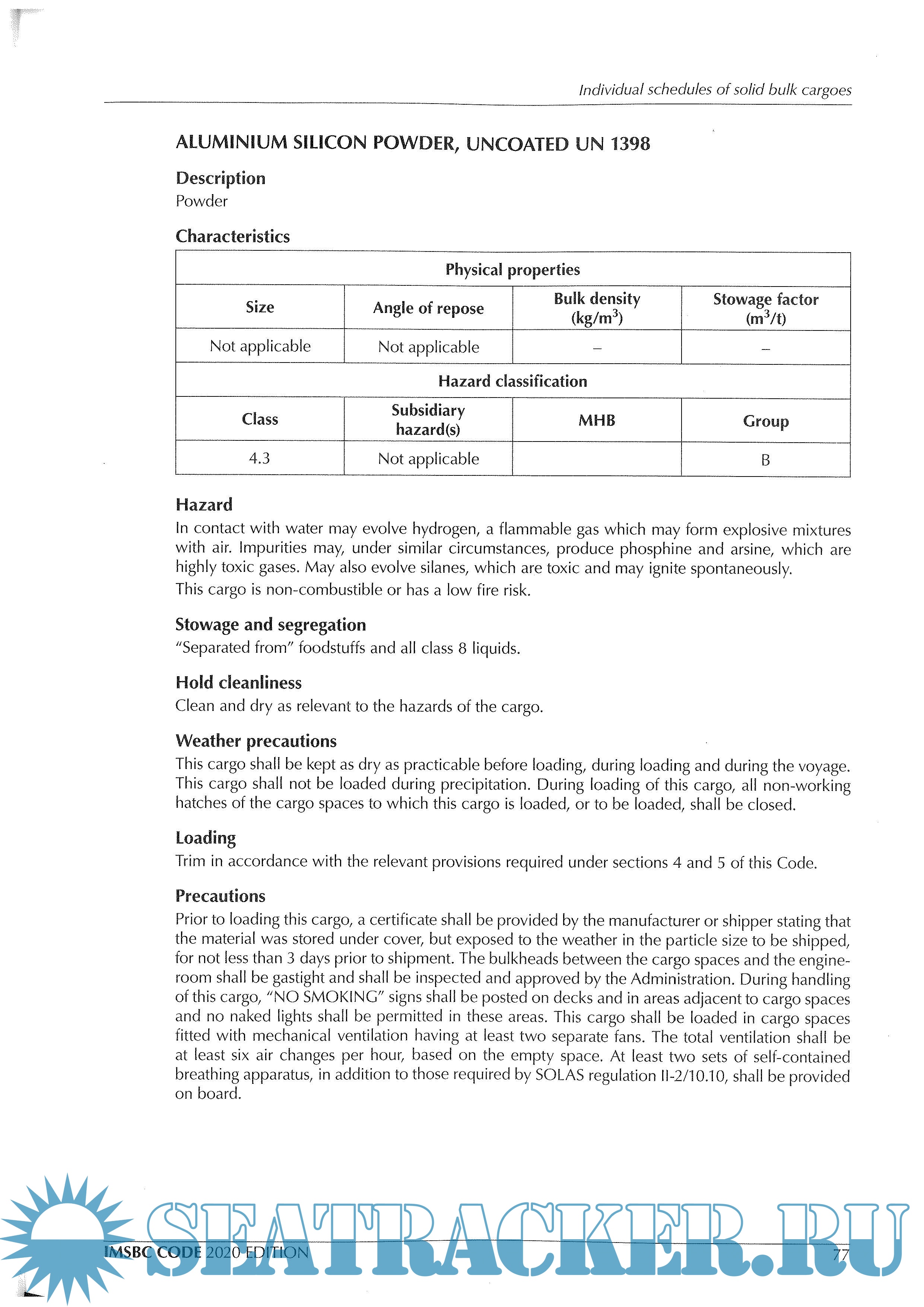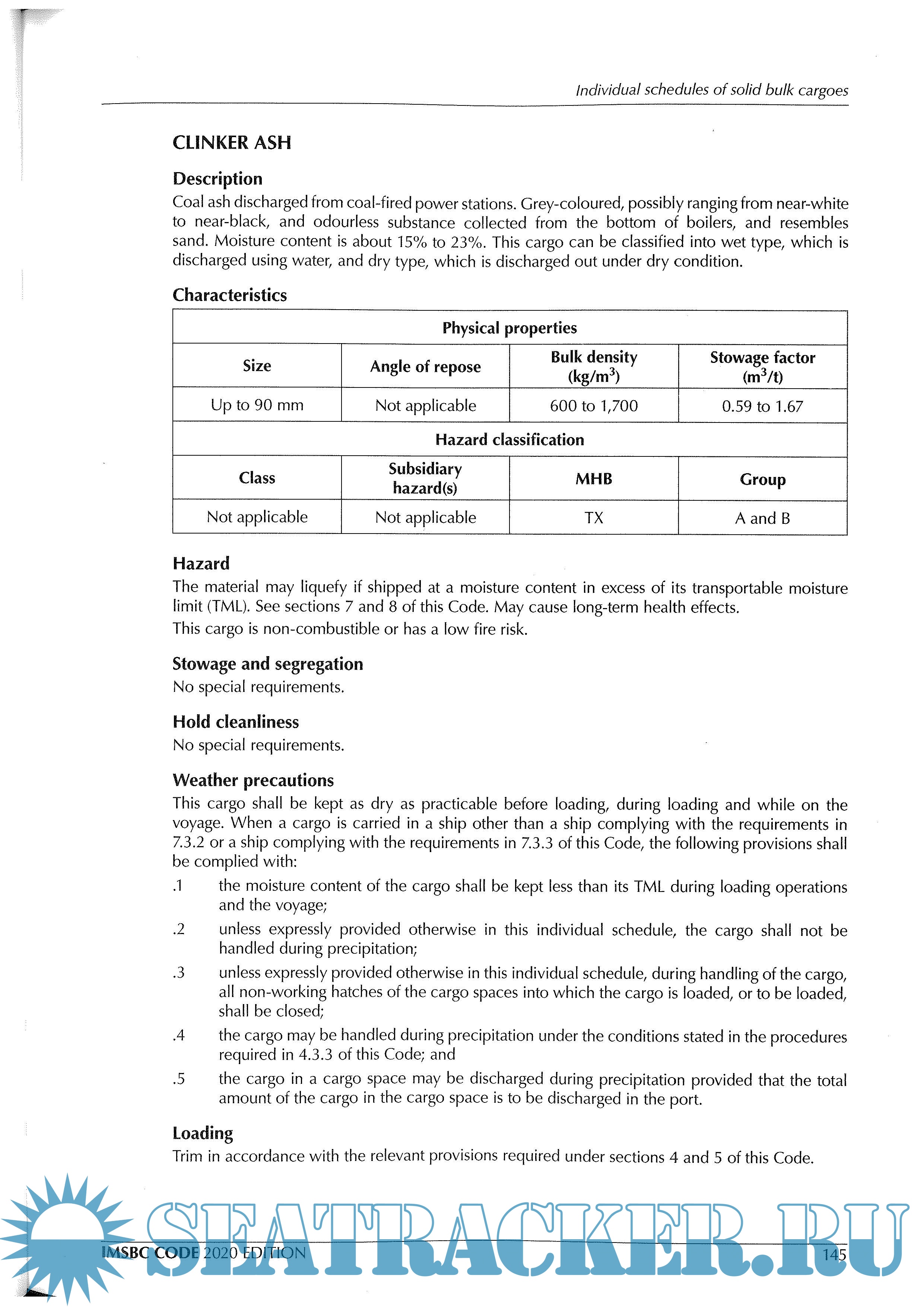 Description: IMO carriage recommends having on board all ships. The International Maritime Solid Bulk Cargoes (IMSBC) Code is for administrators, ship owners, shippers, masters, and all others who need to know about standards to be applied in the safe stowage and shipment of solid bulk cargoes, excluding grain.