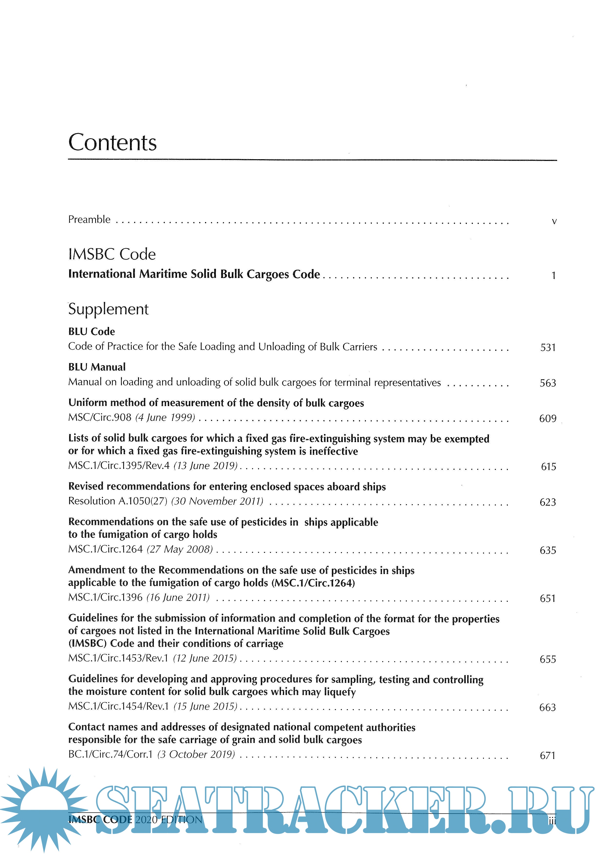 This publication also presents additional information that supplements the IMSBC Code, such as the Code of Practice for the Safe Loading and Unloading of Bulk Carries (BLU Code, including the BLU Manual) and Recommendations for the safe use of pesticides in ships applicable to the fumigation of cargo holds.