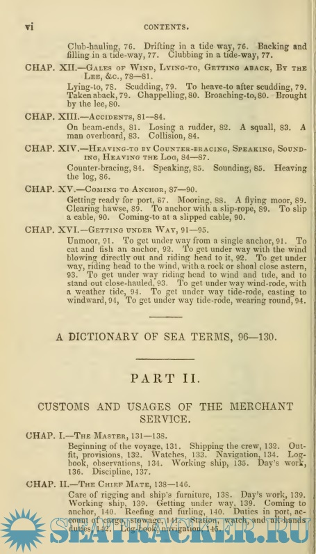 Year: 1851 Language: english Author: Dana R.H. Genre: Dictionary Publisher: Thomas Groom & Co Format: PDF Quality: Scanned pages Pages count: 246 Description: Offers a fascinating look at the seafaring world of the 19th century. Containing a Treatise on Practical Seamanship, with Plates; a Dictionary of Sea Terms; Customs and Usages of the Merchant Service; Laws Relating to the Practical Duties of Master and Mariners.