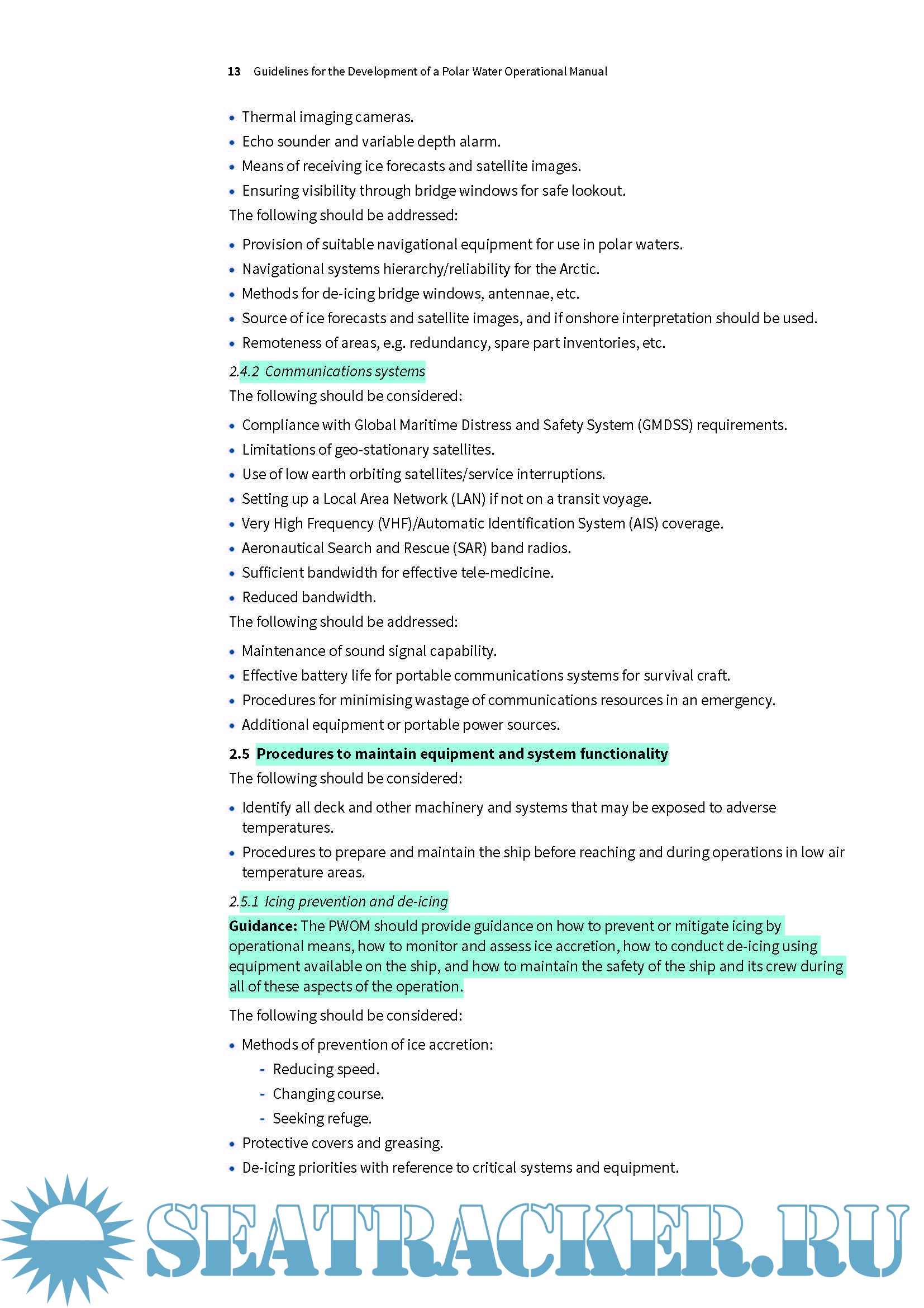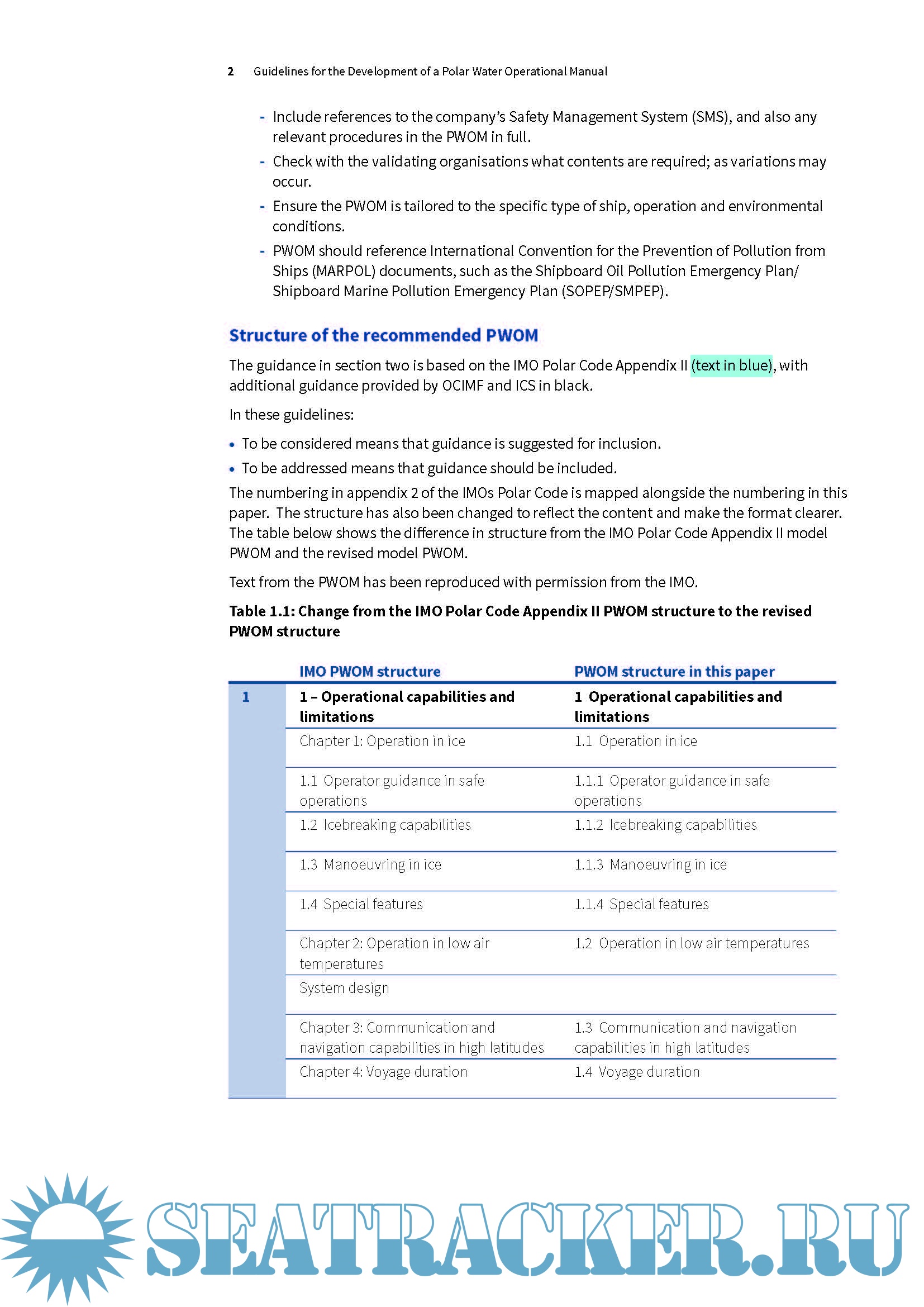 Section two provides a PWOM contents list and guidance for developing the PWOM. The guidance is generic, however, and ship operators and Masters will need to tailor the PWOM to suit the specifics of the ship, environmental conditions and operations.