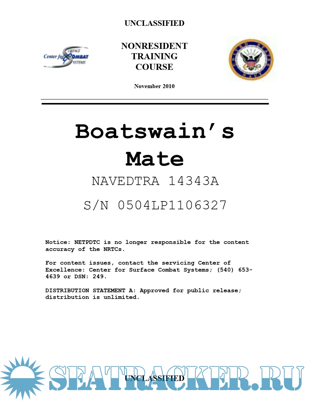 Year: 2010 Language: english Author: NAVEDTRA Genre: Manual Publisher: CSCS Format: PDF Quality: eBook Pages count: 704 Description: This self-study course is organized into subject matter areas, each containing learning objectives to help you determine what you should learn along with text and illustrations to help you understand the information. The subject matter reflects day-to-day requirements and experiences of personnel in the rating or skill area. It also reflects guidance provided by Enlisted Community Managers (ECMs) and other senior personnel, technical references, instructions, etc., and either the occupational or naval standards, which are listed in the Manual of Navy Enlisted Manpower Personnel Classifications and Occupational Standards, NAVPERS 18068.