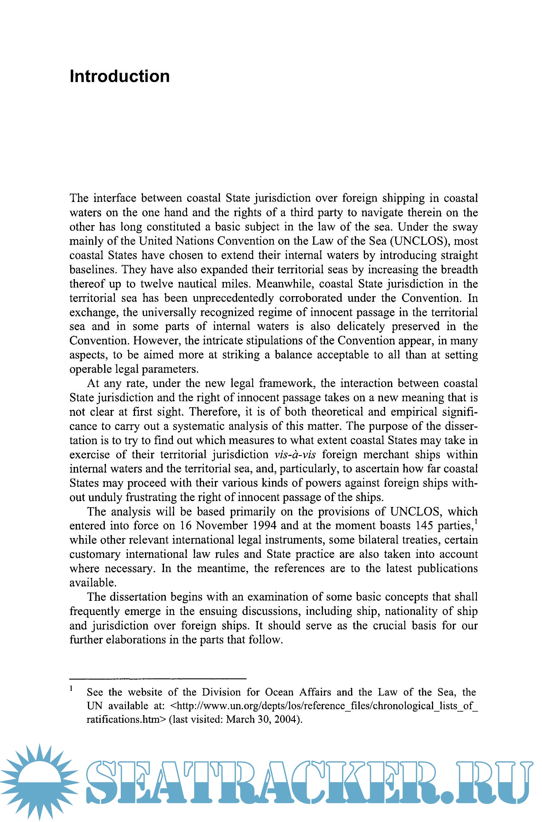 Description: Dr Yang's book deals with the port and coastal State's jurisdiction over foreign merchant ships as well as with the rights and duties of these ships in the internal waters and in the territorial sea. The international law is rather different in both situations. Despite the fact that it faces a number of issues such as, for example, a contested right of access to ports or conditions for port access requirements, the law of foreign merchant ships in internal waters has never been codified. On the other hand, already the League of Nations considered the law of the territorial sea as appropriate for codification in the 1930s. And the Geneva Convention on the Territorial Sea and the Contiguous Zone of 1958 was indeed a codification of most rules of international law on the territorial sea known at that time. The remaining issue of the breadth of the territorial sea was finally solved during the Third United Nations Conference on the Law of the Sea: art. 3 of the UN Convention on the Law of the Sea of 1982 set it at a limit not exceeding 12 nautical miles. In addition, the right of innocent passage of foreign ships through the territorial sea is regulated in the 1982 Convention in greater detail than ever before, whilst the new regime on the prevention of marine pollution provided in Part XII of the Convention has also considerable impact on this right.