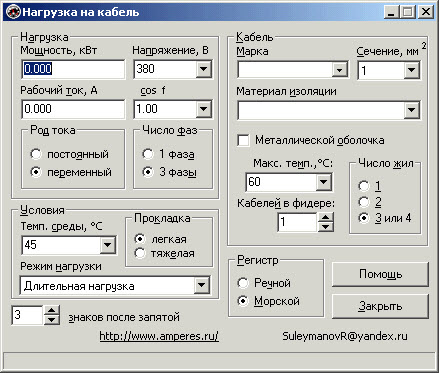 Описание: Расчет токовой нагрузки на кабель и, наоборот, выбор кабеля в зависимости от нагрузки.