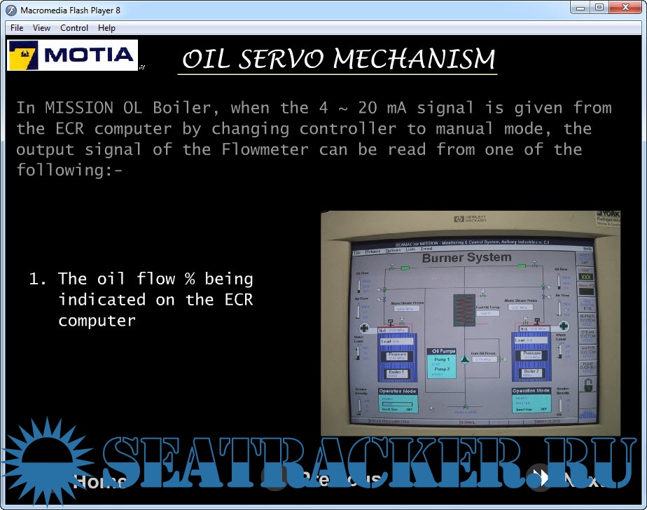 Год: 2007 Language: english Developer: MOTIA Format: EXE (Macromedia Flash) Number of pages: ~50 Description: Презентации дают базовое описание принципа действия сервомоторов /контроллеры по воздуху и топливу/ и алгоритм поиска причин и устранения отказов