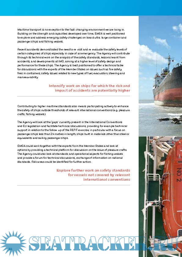 Year: 2019 Language: english Author: EMSA Genre: Reference book Format: PDF Quality: eBook Pages count: 52 Description: This EMSA 5-Year Strategy comes at just the right time: on the crest of a new wave that will have a big impact on the course of maritime transport and all the actors and lives that are linked to it. The environment has made its way right to the top of the agenda everywhere – in all corners of the globe and in every sector. This implies multiplying, diversifying and integrating our efforts in the maritime field, to not only prevent and respond to pollution, but to help build a genuinely sustainable maritime sector that can contribute its fair share to the circular economy and to EU’s climate neutral ambition. Technology is the other big issue that is profoundly redefining our sector. Digitalisation is one aspect, with far-reaching consequences. If properly harnessed, there are opportunities to make our shipping industry cleaner, safer, simpler and more secure, for instance using the potential of automation or Artificial Intelligence. But these opportunities come with safety and security challenges that need to be carefully managed, cybersecurity being the key concern. Knowledge is the strongest currency as we move forward. It is not enough to collect data, it must be transformed into intelligent tools and services. Information sharing must be a priority in order to support effective and inclusive cooperation. Capacity building will continue to be an essential component of a positive cycle in relation to practices, guidance and standards, in the EU and further afield.