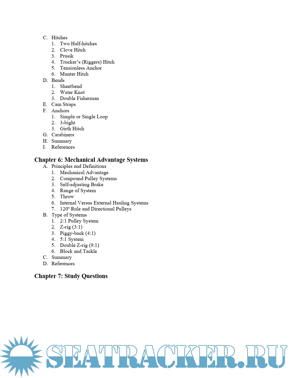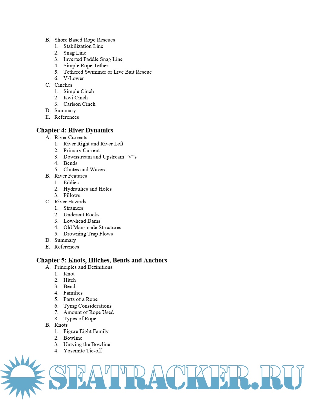 Year: 2018 Language: english Author: Kauffman R.B. Publisher: Kauffman R.B. Format: PDF Quality: Scanned pages Pages count: 106 Description: Swiftwater Rescue Course Manual: The Swiftwater Rescue Manual was developed by rbk who is responsible for its contents. People are welcome to use any and all the materials. They do so with the following stipulations. 1. Users using the materials acknowledge that they are knowledgeable in swiftwater rescue and know how to use the materials contained herein. These materials are provided to assist people already knowledgable and trained in swiftwater rescue. [Yes, this is a disclaimer.] 2. The author has attempted to be accurate and has not purposely created false information. Again, users of these materials assume that they are knowledgable and can determine for themselves any errors or incorrect information. [Yes, this is a disclaimer.] 3. In an effort to advance SWR, these materials are offered free. Anyone who uses the materials, in part or in full, may do so. The only request is to provide rbk with the appropriate acknowledgement for the materials used. In other words, acknowledge and don't plagiarize. Use, but don't abuse. Recognize the source.