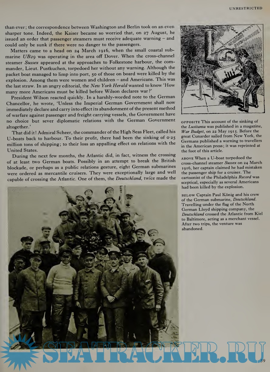 Year: 1977 Language: english Author: Garrett R. Genre: History Publisher: Little, Brown and Company Format: PDF Quality: Scanned pages Pages count: 150 Description: A submarine (or sub) is a watercraft capable of independent operation underwater. It differs from a submersible, which has more limited underwater capability. It is also sometimes used historically or colloquially to refer to remotely operated vehicles and robots, as well as medium-sized or smaller vessels, such as the midget submarine and the wet sub. Submarines are referred to as "boats" rather than "ships" irrespective of their size. Although experimental submarines had been built before, submarine design took off during the 19th century, and they were adopted by several navies. Submarines were first widely used during World War I (1914–1918), and are now used in many navies large and small. Military uses include attacking enemy surface ships (merchant and military), or other submarines, aircraft carrier protection, blockade running, ballistic missile submarines as part of a nuclear strike force, reconnaissance, conventional land attack (for example using a cruise missile), and covert insertion of special forces. Civilian uses for submarines include marine science, salvage, exploration and facility inspection and maintenance. Submarines can also be modified to perform more specialized functions such as search-and-rescue missions or undersea cable repair. Submarines are also used in tourism and undersea archaeology.