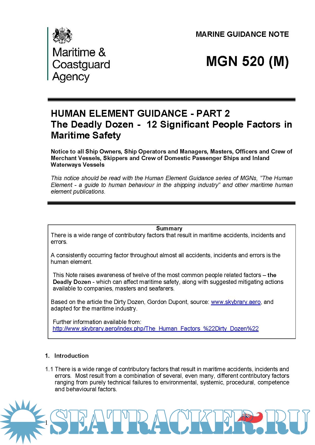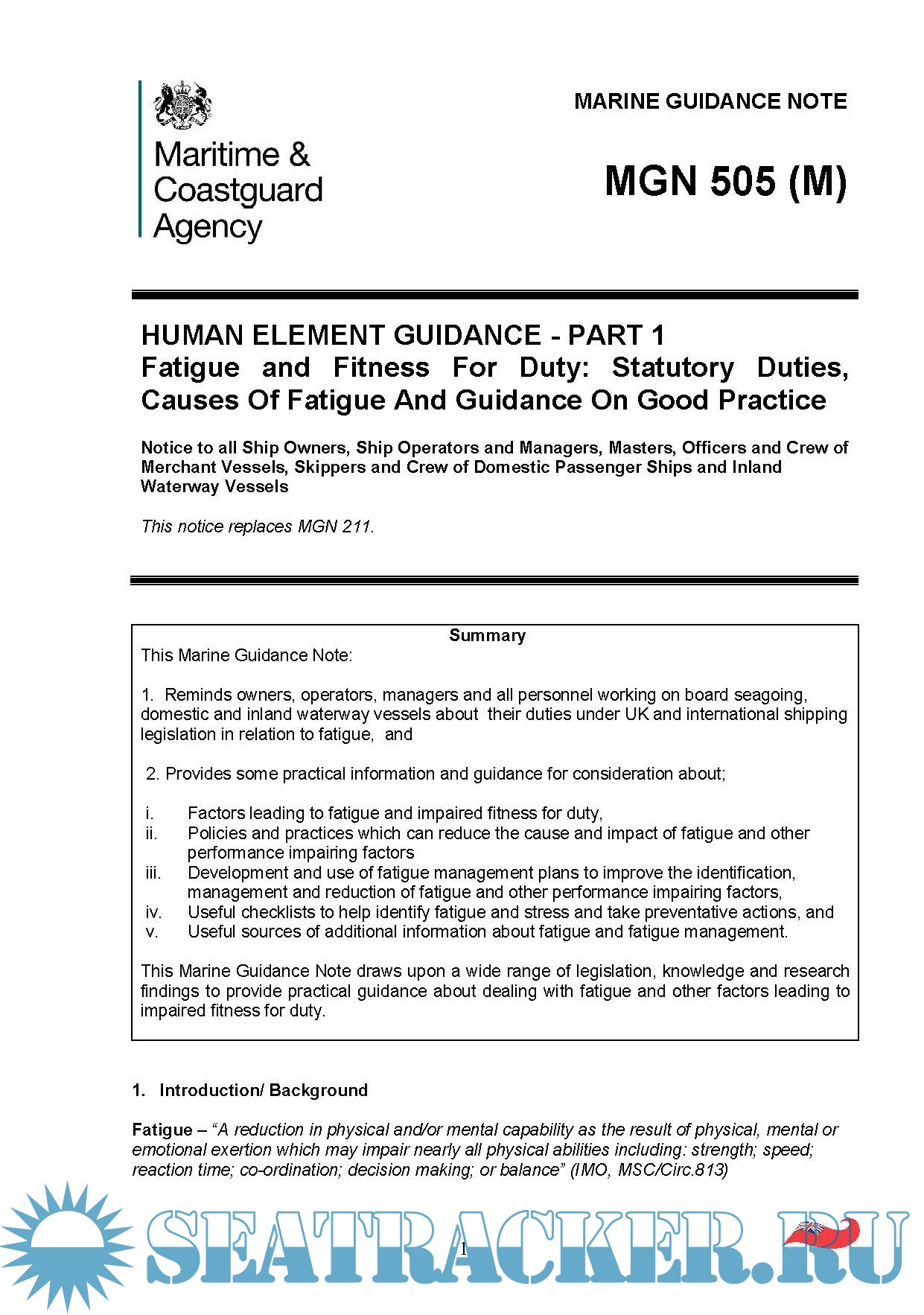 1. Human Element Guidance Part 1, MGN 505 (25 pages), Published 31 March 2014 - Last updated 6 January 2017