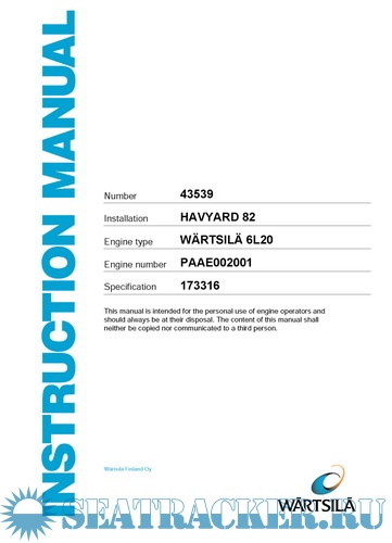 Description: Инструкция по эксплуатации двигателя Wärtsilä 6L32 на английском языке.