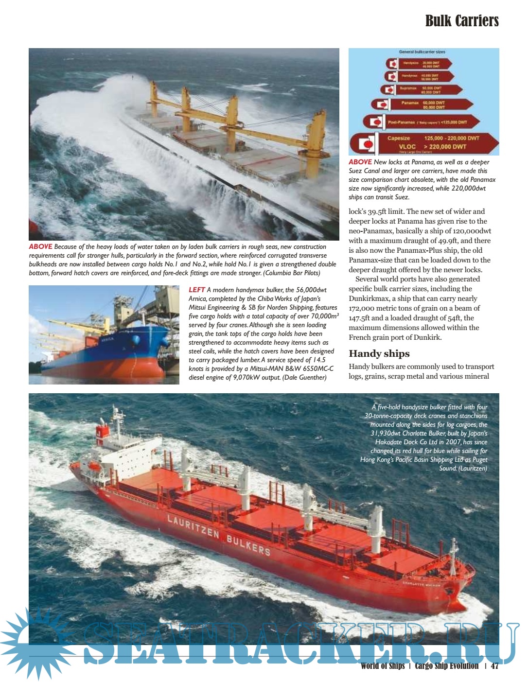 Contents CHAPTER 1 Historical evolution A summary of the emergence of ship types and propulsion systems prior to and after World War I, covering reefers, heavylifters, ship construction, ro-ro, container ships, tankers, gas ships, bulk carriers and self-unloaders. CHAPTER 2 Container ships The development of container ships from the 1950s, including convertible holds, engine sizes, and the use of LNG propulsion. CHAPTER 3 Ro-ros and con-ros A look at the history of ro-ro vessel development, the emergence of con-ro ships and new con-ro confi gurations, auto carriers and livestock ships. CHAPTER 4 General cargo ships General cargo and multipurpose vessels, new designs for both multipurpose and refrigerator ships, and the development of open-hatch bulk carriers. CHAPTER 5 Bulk Carriers Bulk carriers up to capesize, wood chip carriers, combination ships, self-unloaders and LNG bulk carrier development. CHAPTER 6 Oil carriers Oil tankers, how they are loaded and discharged, the largest ships ever constructed, FPSOs and shuttle tankers. CHAPTER 7 Parcel tankers The development of parcel tankers, product carriers, chemical ships, asphalt carriers and ITBs and ATBs for the coastal trades. CHAPTER 8 Gas carriers The first LNG and LPG tankers, loading and discharge, propane, butane and ethylene carriers and new types of gas carriers. CHAPTER 9 Largest and strongest Heavylift ships, including Belships, the Stülcken system, ro-ro loading, crane-equipped ships, semi-submersibles and the largest ships ever built.