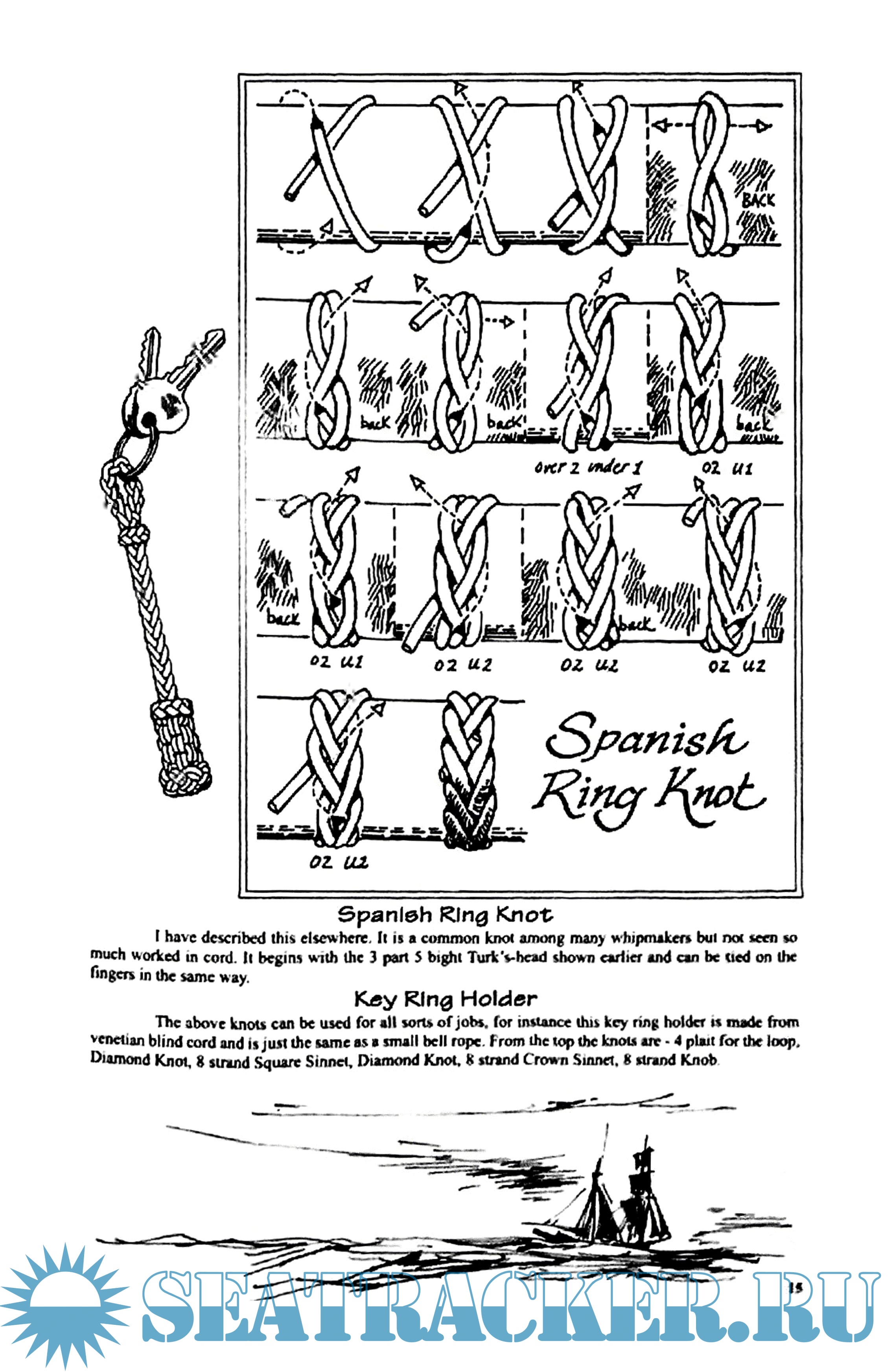 Description: Illustrates a large number of knots used for decorative work on board sailing ships, as well as the more practical ones, monkey's fist, diamond knot, star knot etc. In addition there is a section on the common knots used on land.
