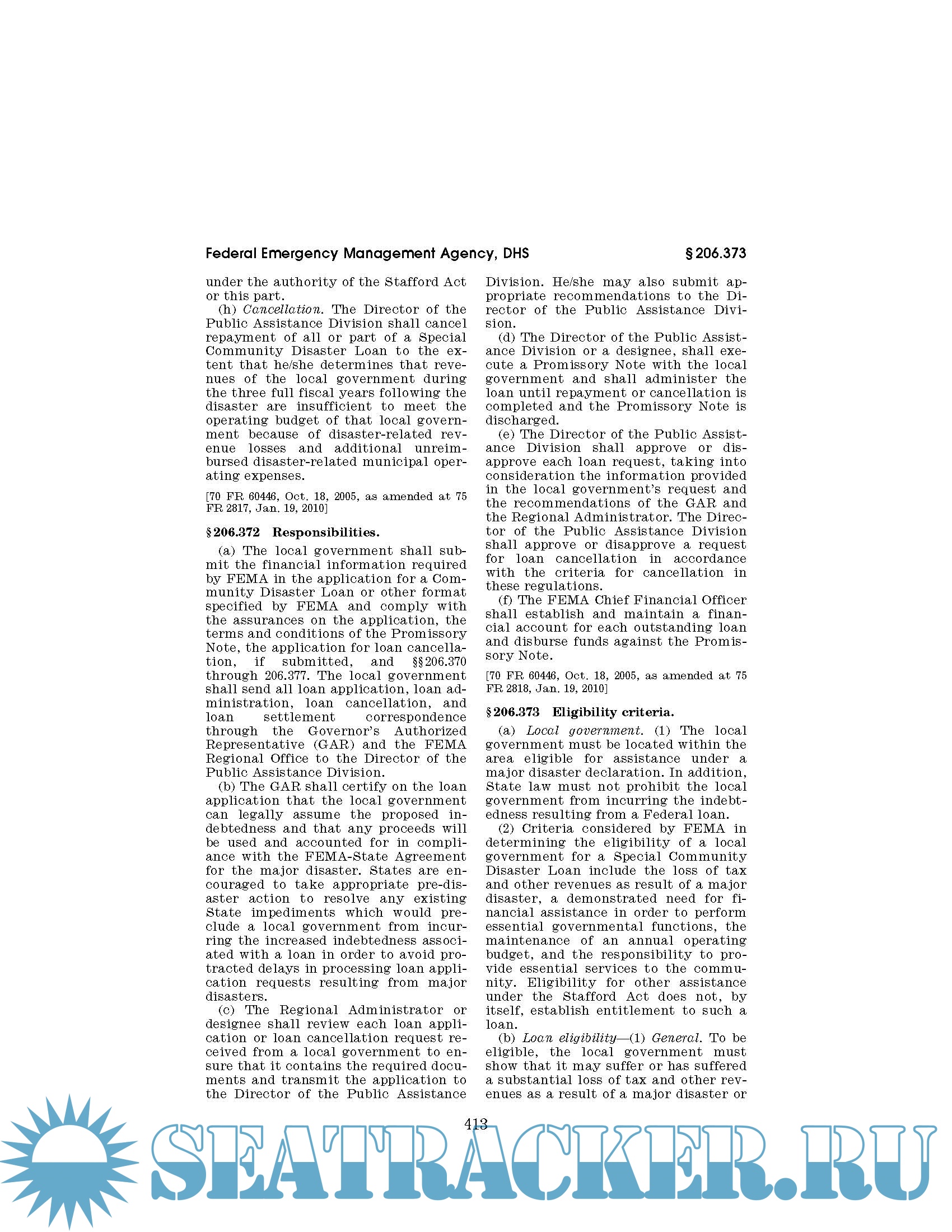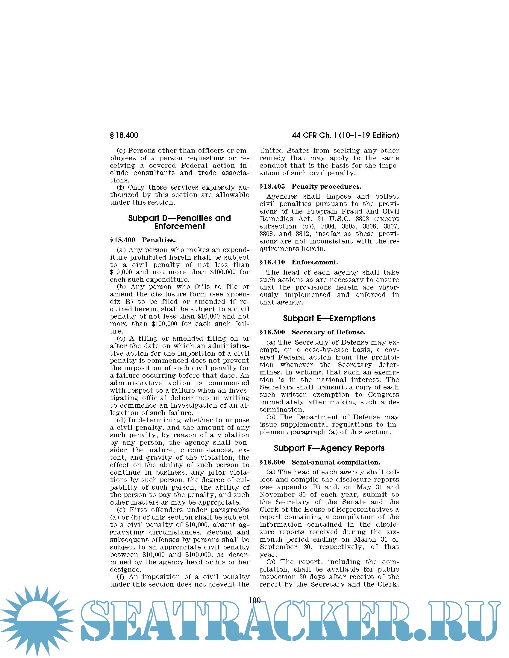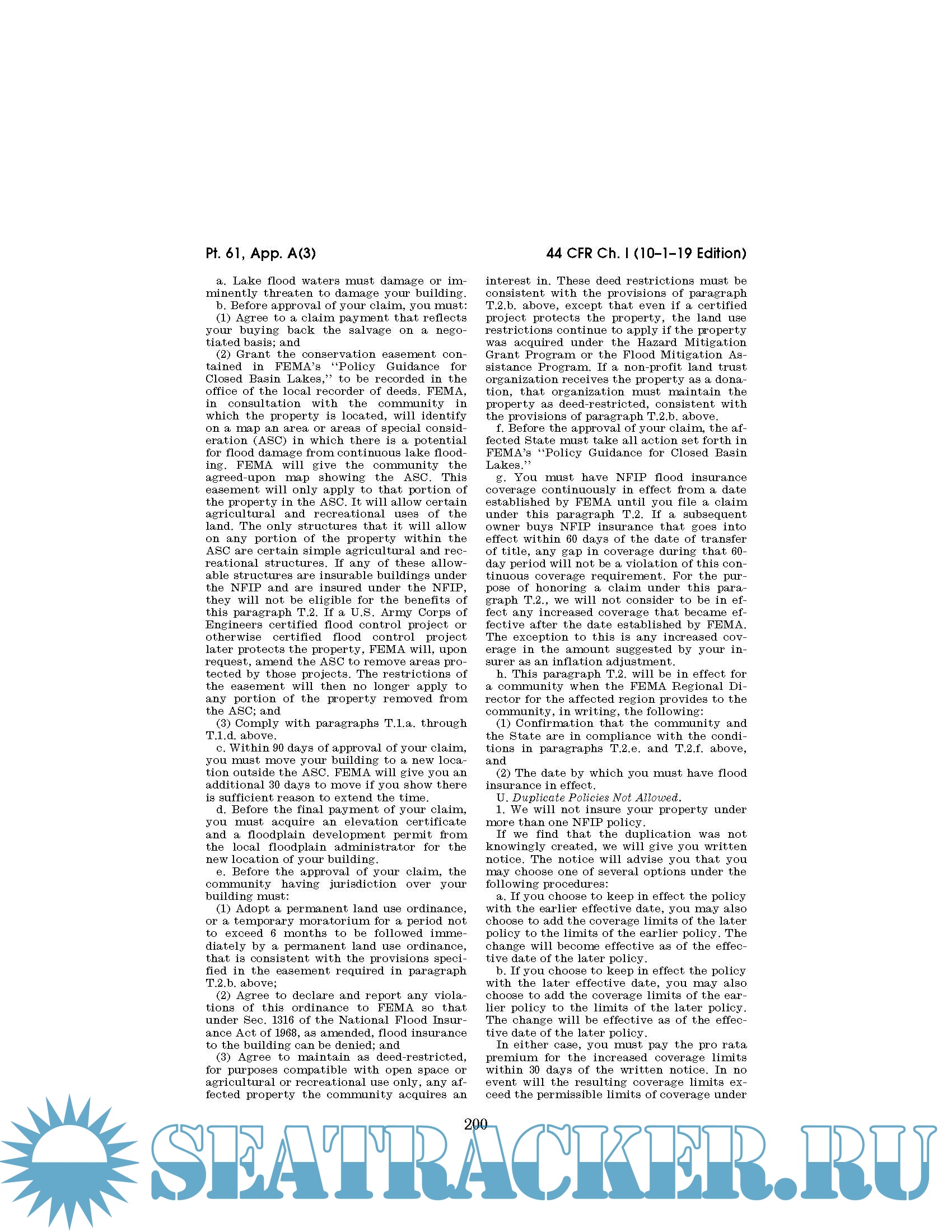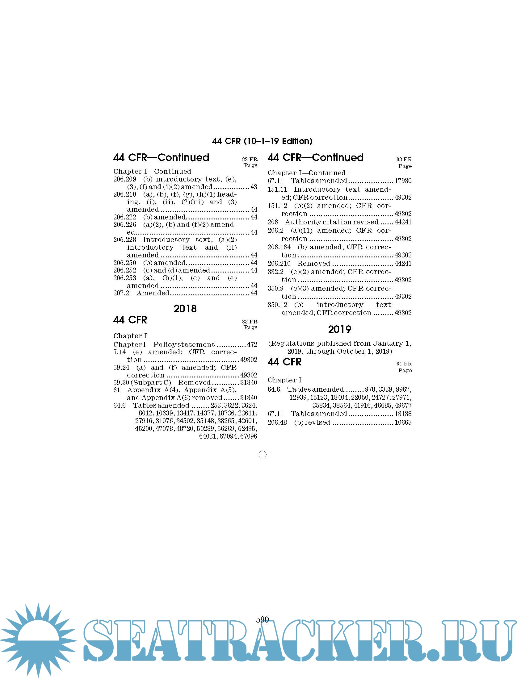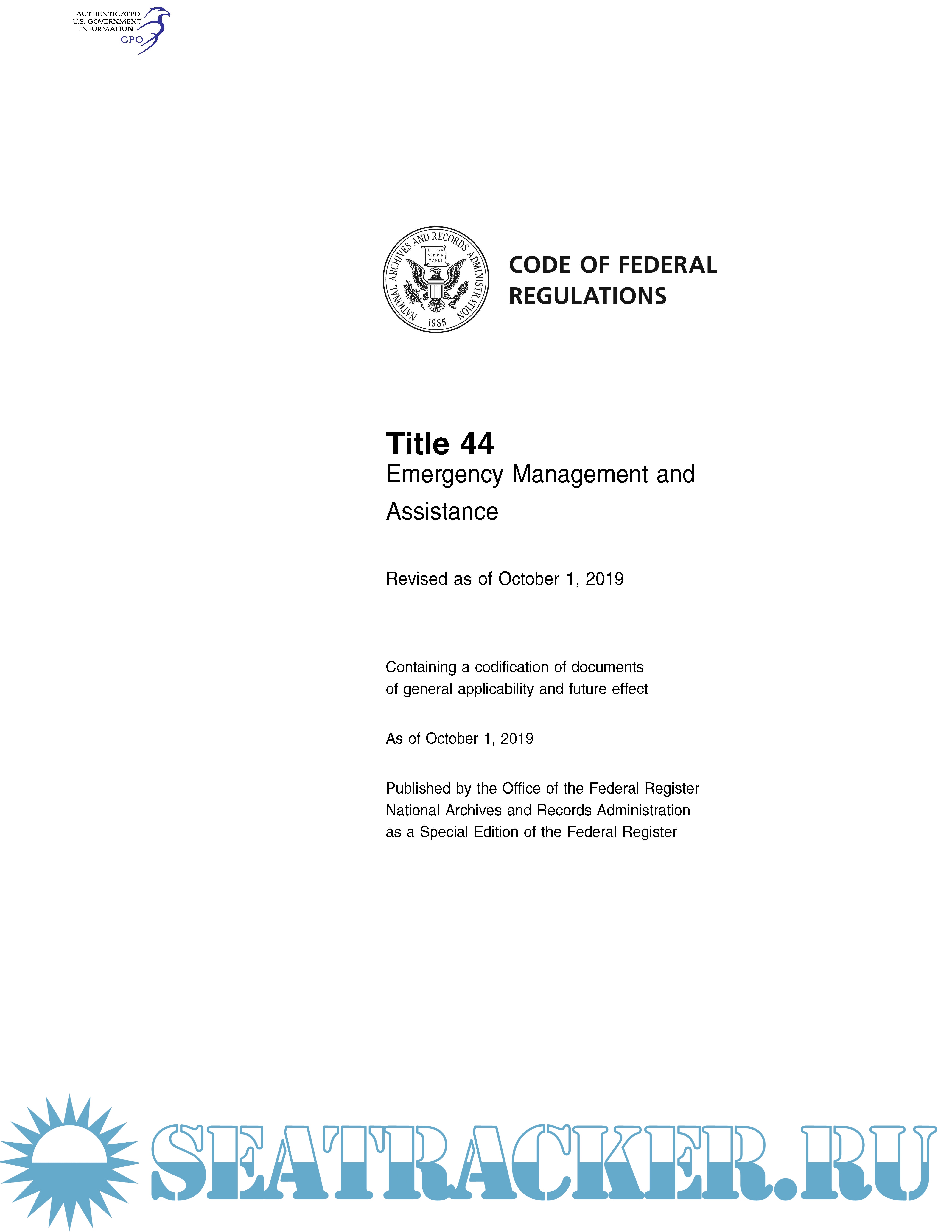 Code of Federal Regulations CFR Title 44 - Emergency Management and Assistance Parts 1 - 499. October 1, 2019