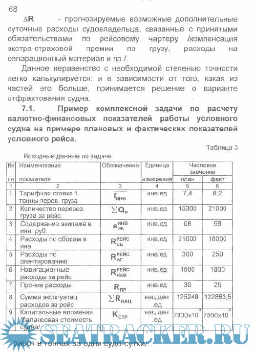 7.1. Пример комплексной задачи по расчету валютнофинансовых показателей работы условного судна на примере плановых и фактических показателей рейса...........................................................................................68