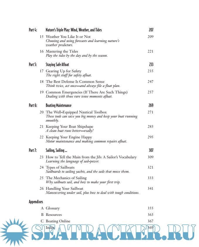 Year: 2002 Language: english Author: Sargeant F. Genre: Guide Publisher: Imprint Unknown ISBN: 978-0028643540 Format: PDF Quality: eBook Pages count: 408 Description: An excellent overview of both power boating and sailing--and focusing on the techniques shared by both. For example, anchoring, motoring, docking, trailering and other techniques are critical for both types of boaters to learn--and the most common techniques omitted by most sailing only books. It also covers weather, safety, maps, rules of the road, dealing with people on the boat, gear, types of boats--power and sailboats and the basics of sailing. New material for this edition will include information on GPS and other marien electronics including wireless mapping and navigation systems, sailboat maintenance from sails to rigging, fuel-savers such as four stroke outboards and HPDI, the latest seasickness cures, advances in PFDs, and getting your captain's license! Additional info: About the Author Frank Sargeant is a well-known boating writer with monthly features in Boating magazine and Sports Afields magazine. He writes a weekly award-winning column on boating in the Tampa Tribune and has been a local favorite in Florida for 40 years. He has written 10 books on boating, sailing, and fishing.