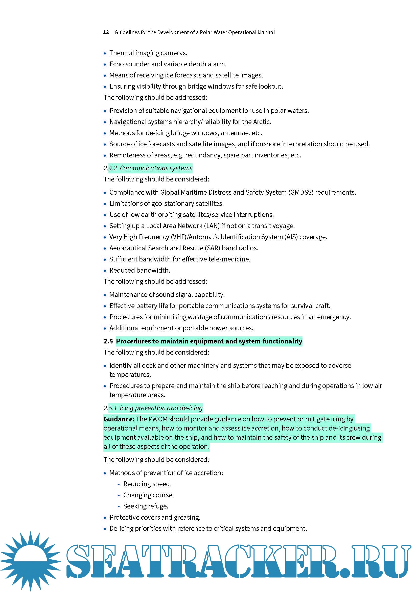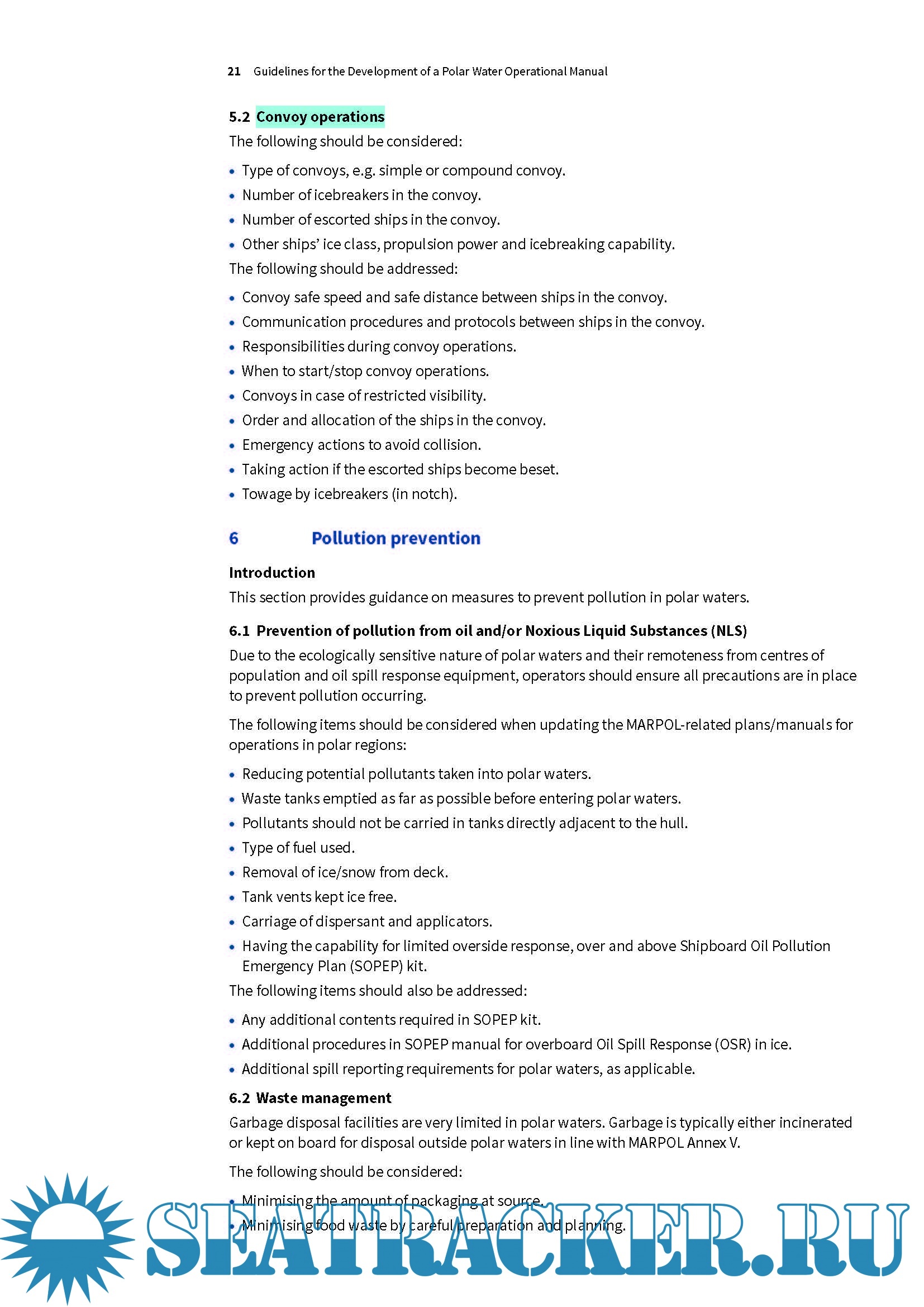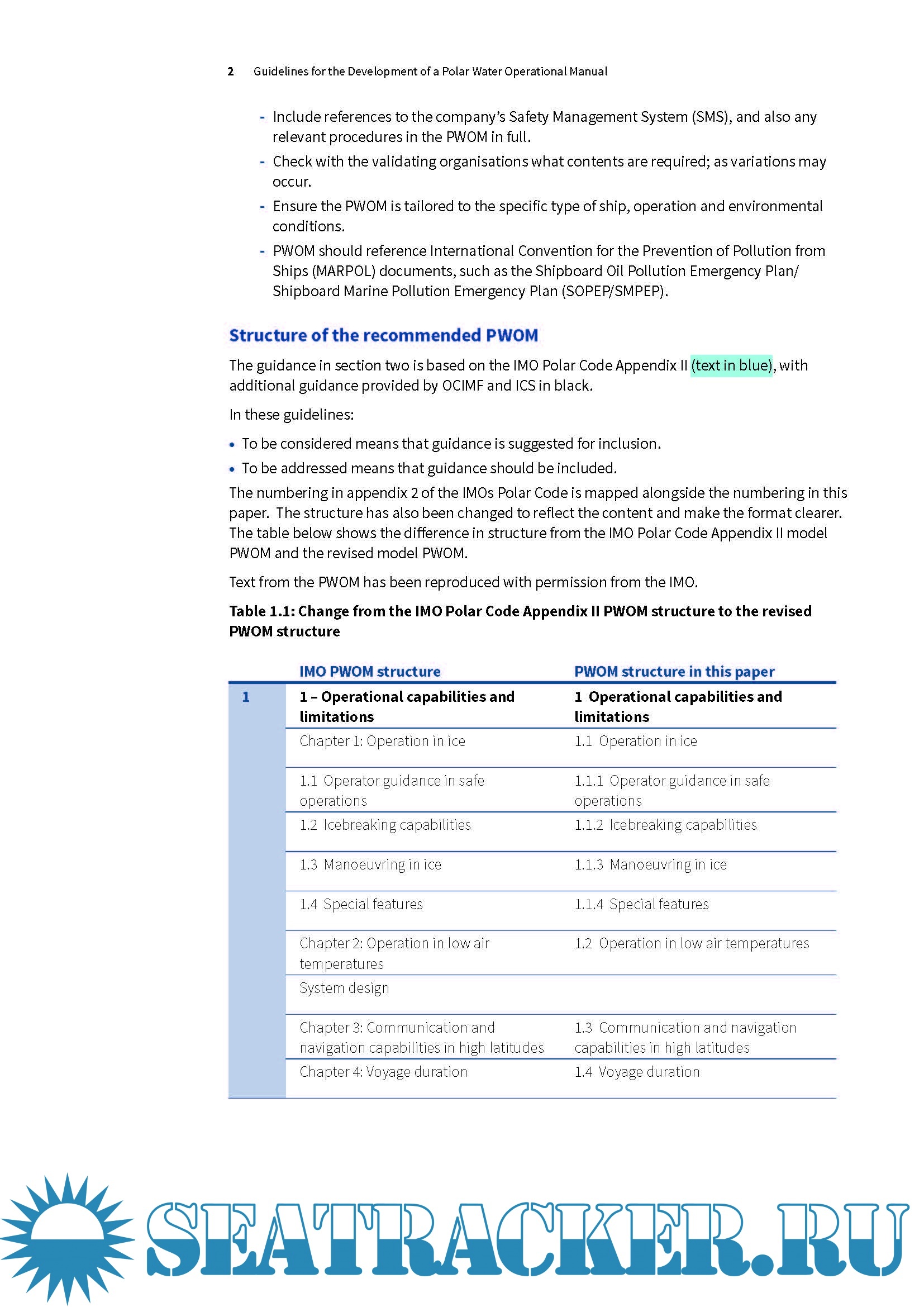 Section two provides a PWOM contents list and guidance for developing the PWOM. The guidance is generic, however, and ship operators and Masters will need to tailor the PWOM to suit the specifics of the ship, environmental conditions and operations.
