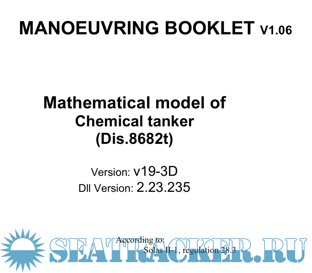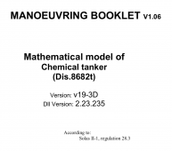 Description: Manoeuvring booklets: Ship particulars, characteristisc of main engine, course change performance, etc.
