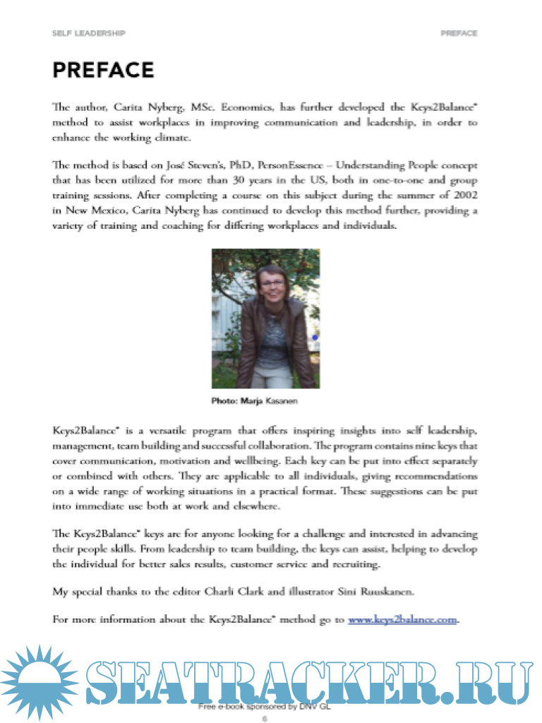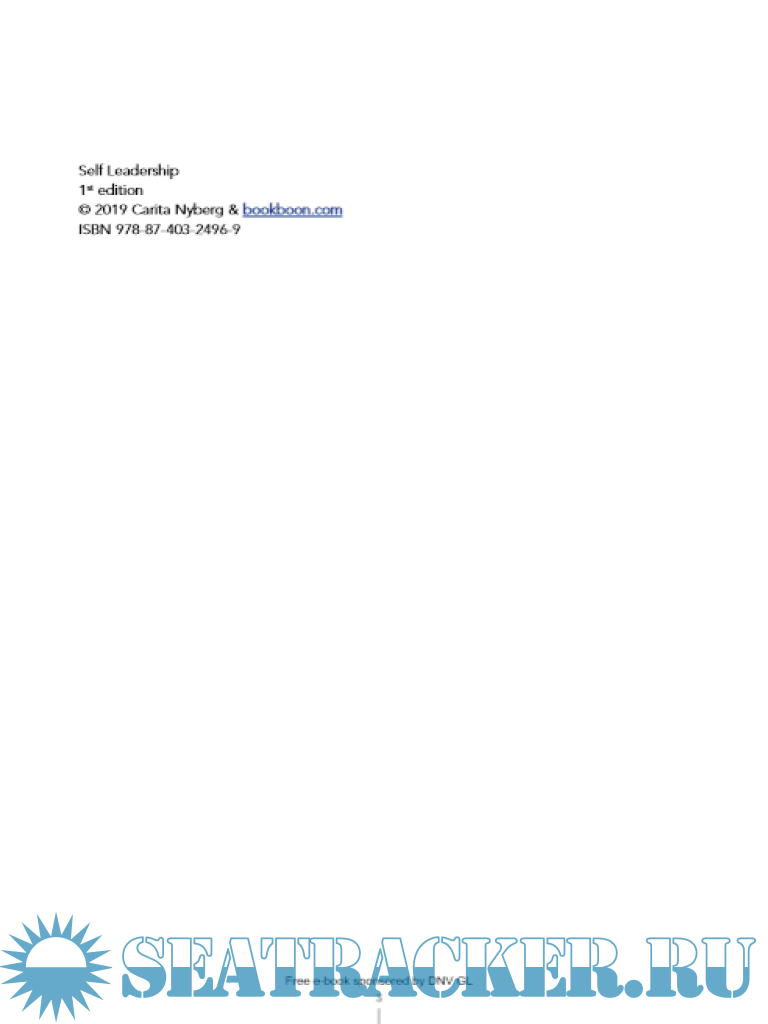 Year: 2019 Language: english Author: Carita Nyberg Genre: Textbook Publisher: Bookboon Edition: 1st ISBN: 978-87-403-2496-9 Format: PDF Quality: eBook Pages count: 63 Description: Do you want to improve your leadership skills? Or interested in gaining insight into your own strengths? Did you know that great leadership is a result of good self-leadership? This publication offers numerous hints and tips to help you better understand yourself and others. Read this book to improve your understanding of leadership and equip yourself with practical exercises, to enable you to be an effective leader at work and elsewhere. Additional info: Sponsored by DNV-GL, Created and Published by Carita Nyberg and bookboon.com
