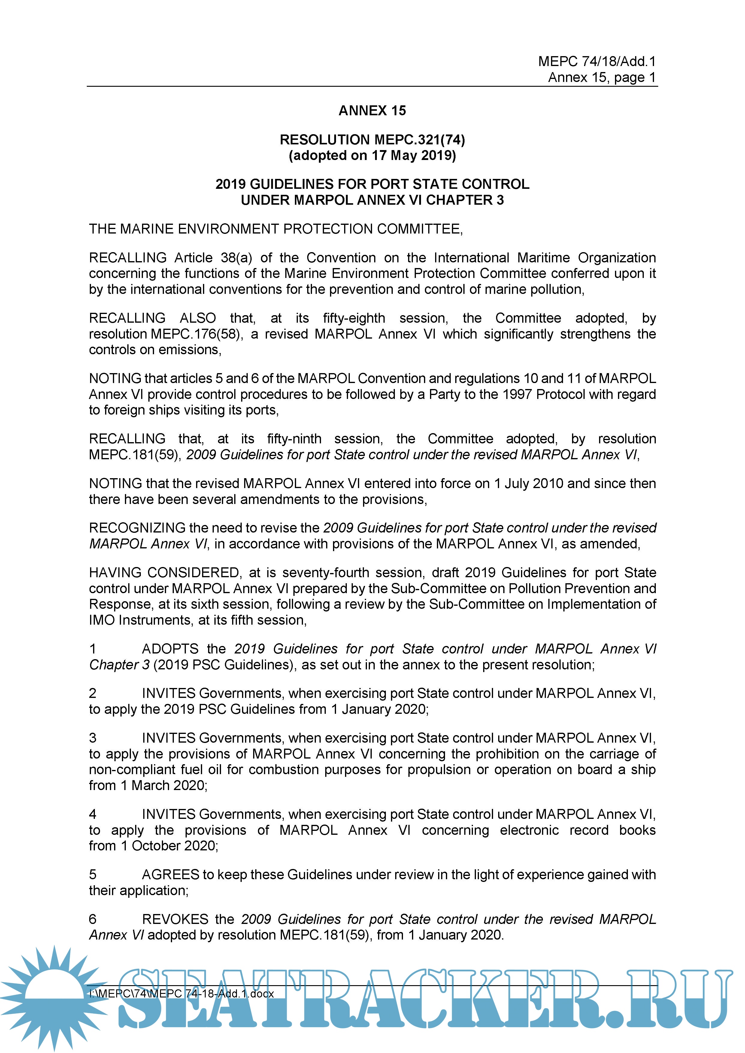 6 !!! REVOKES !!! the 2009 Guidelines for port State control under the revised MARPOL Annex VI adopted by resolution MEPC.181(59) (see https://seatracker.me/viewtopic.php?t=1181), from 1 January 2020